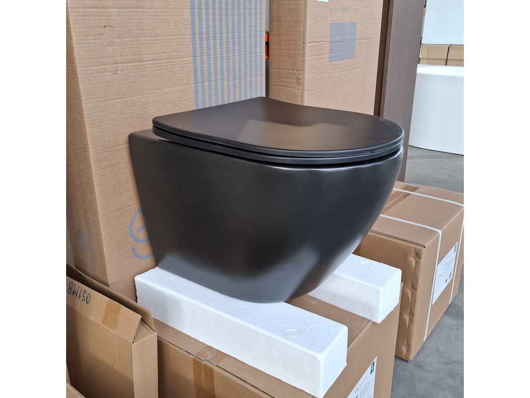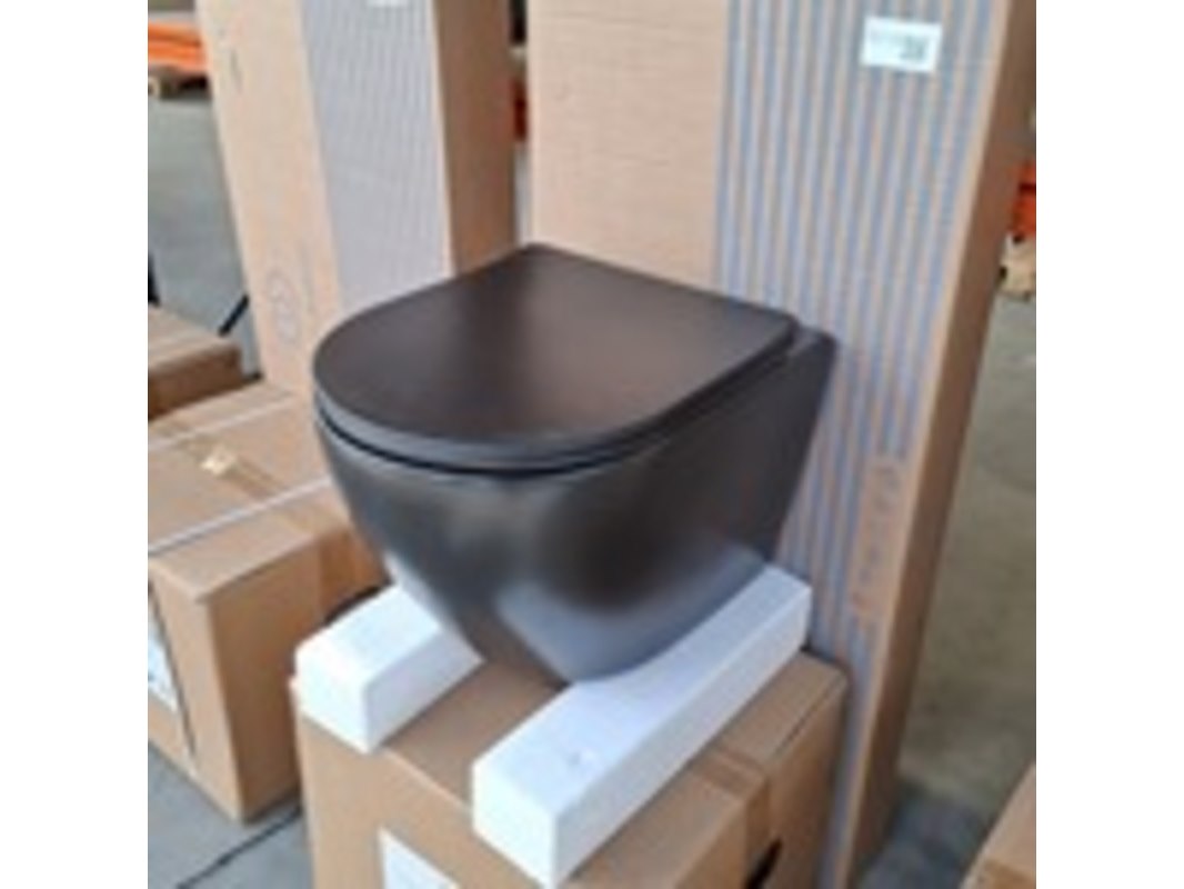 Merk: Solar Product: Wandcloset Kleur: Mat zwart Specificaties: rimfree, incl. zitting/deksel, met softclose en quick release, EAN: 8711802073223