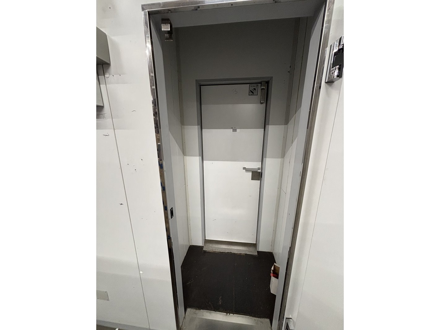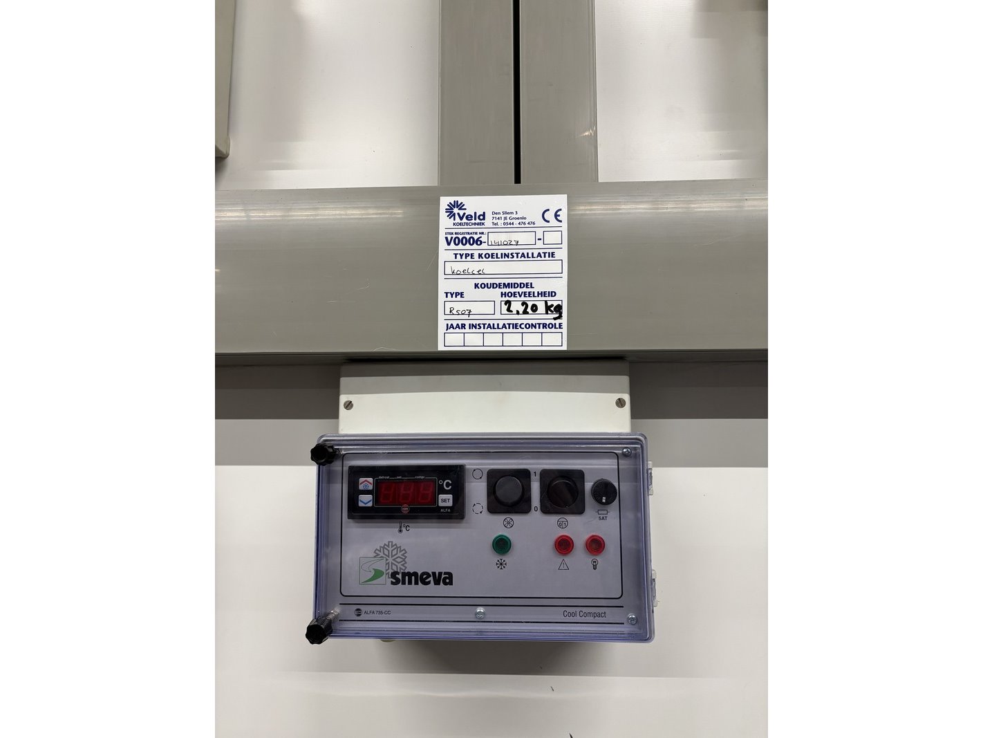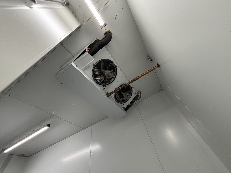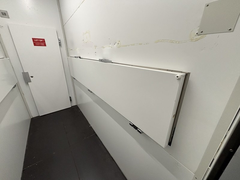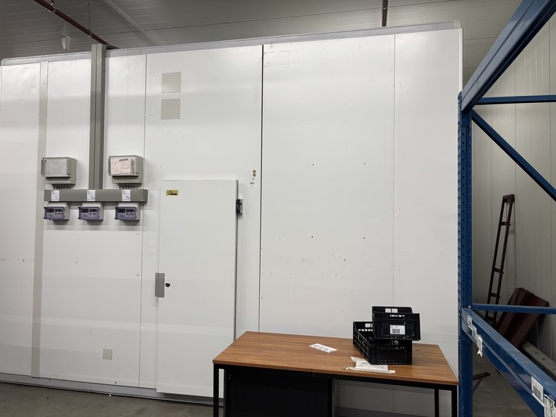Merk: Smeva Product: Koel/vriescel Kleur: wit Afmeting: ca. 4,7x4,6x3.4m Conditie: gebruikt Specificaties: Deze koel/vriescel bestaat uit een gekoelde ingang met sluisdeuren en twee naastgelegen vriesgedeelten. Vanuit de Vriesdelen kunnen er goederen via horizontale luiken ingenomen of uitgegeven worden. Het geheel is voorzien van 1 koelunit en twee vriesunits. Deze kavel omvat zowel het binnen- als buitengedeelte. De demontage van de technische installatie moet door een gecertificeerde monteur (BRL-200 gecertificeerd) en bedrijf (BRL-100 gecertificeerd) uitgevoerd worden. De installatie is al lange tijd niet meer in gebruik.