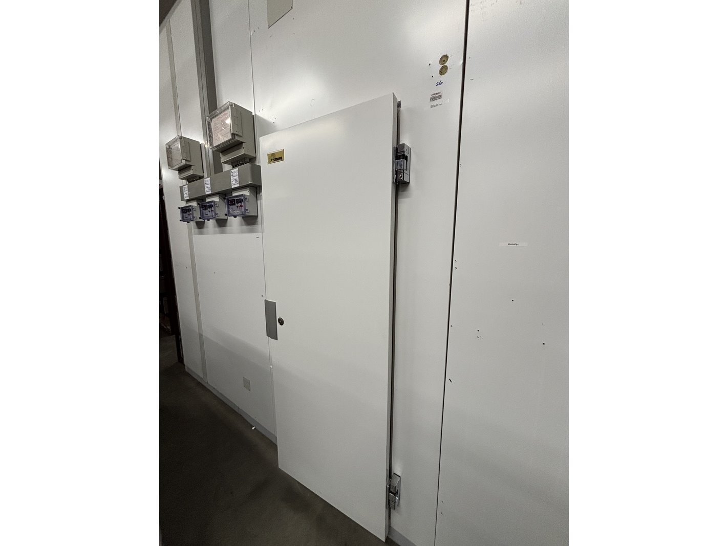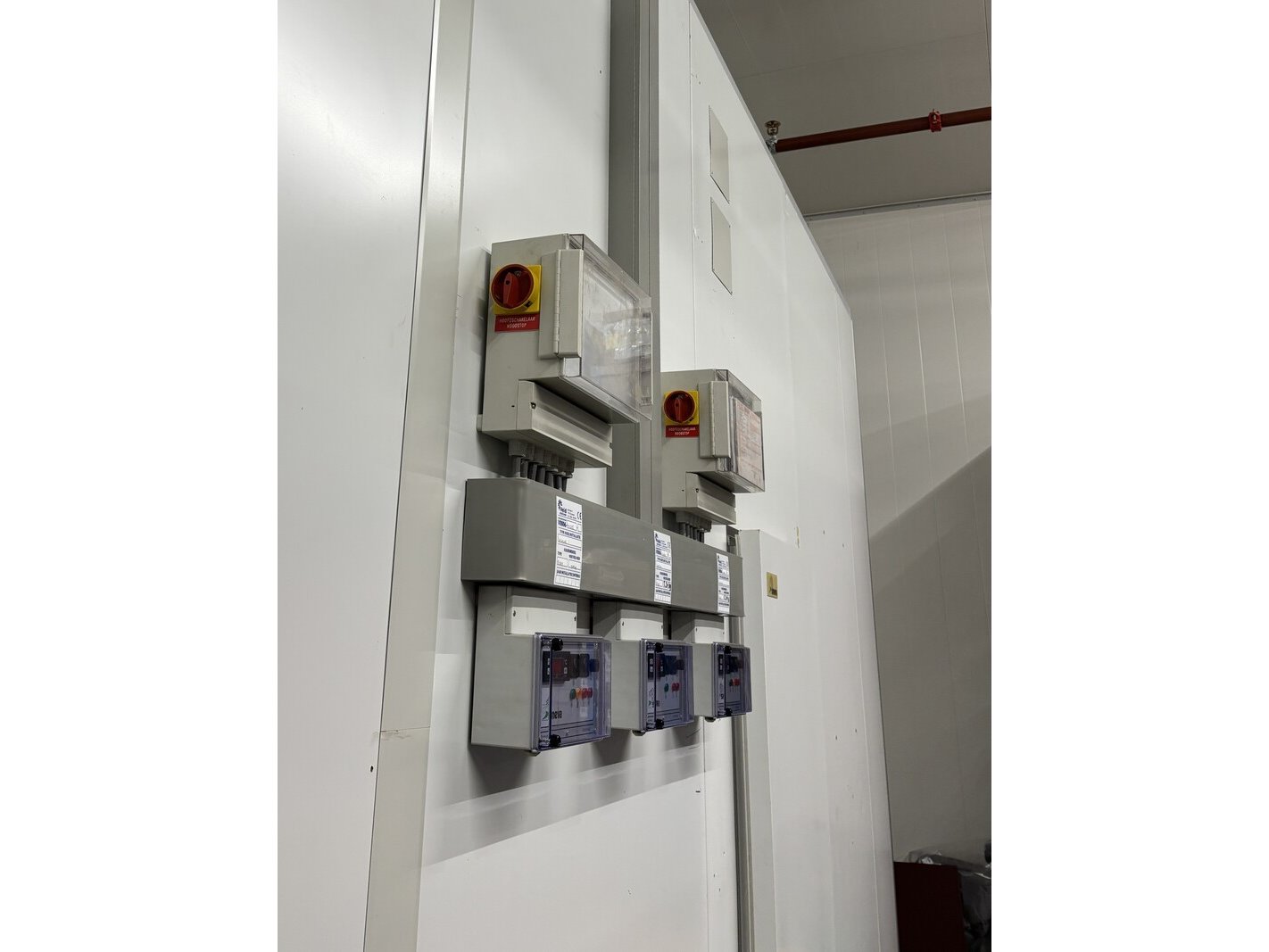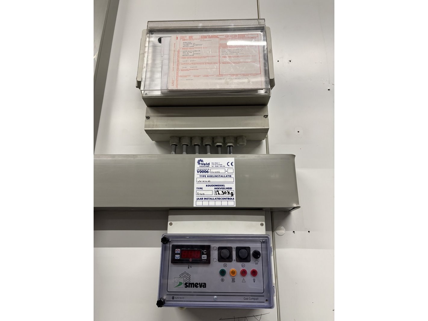 Merk: Smeva Product: Koel/vriescel Kleur: wit Afmeting: ca. 4,7x4,6x3.4m Conditie: gebruikt Specificaties: Deze koel/vriescel bestaat uit een gekoelde ingang met sluisdeuren en twee naastgelegen vriesgedeelten. Vanuit de Vriesdelen kunnen er goederen via horizontale luiken ingenomen of uitgegeven worden. Het geheel is voorzien van 1 koelunit en twee vriesunits. Deze kavel omvat zowel het binnen- als buitengedeelte. De demontage van de technische installatie moet door een gecertificeerde monteur (BRL-200 gecertificeerd) en bedrijf (BRL-100 gecertificeerd) uitgevoerd worden. De installatie is al lange tijd niet meer in gebruik.