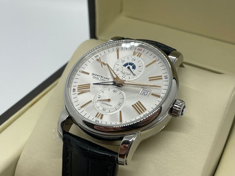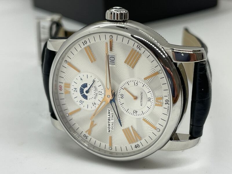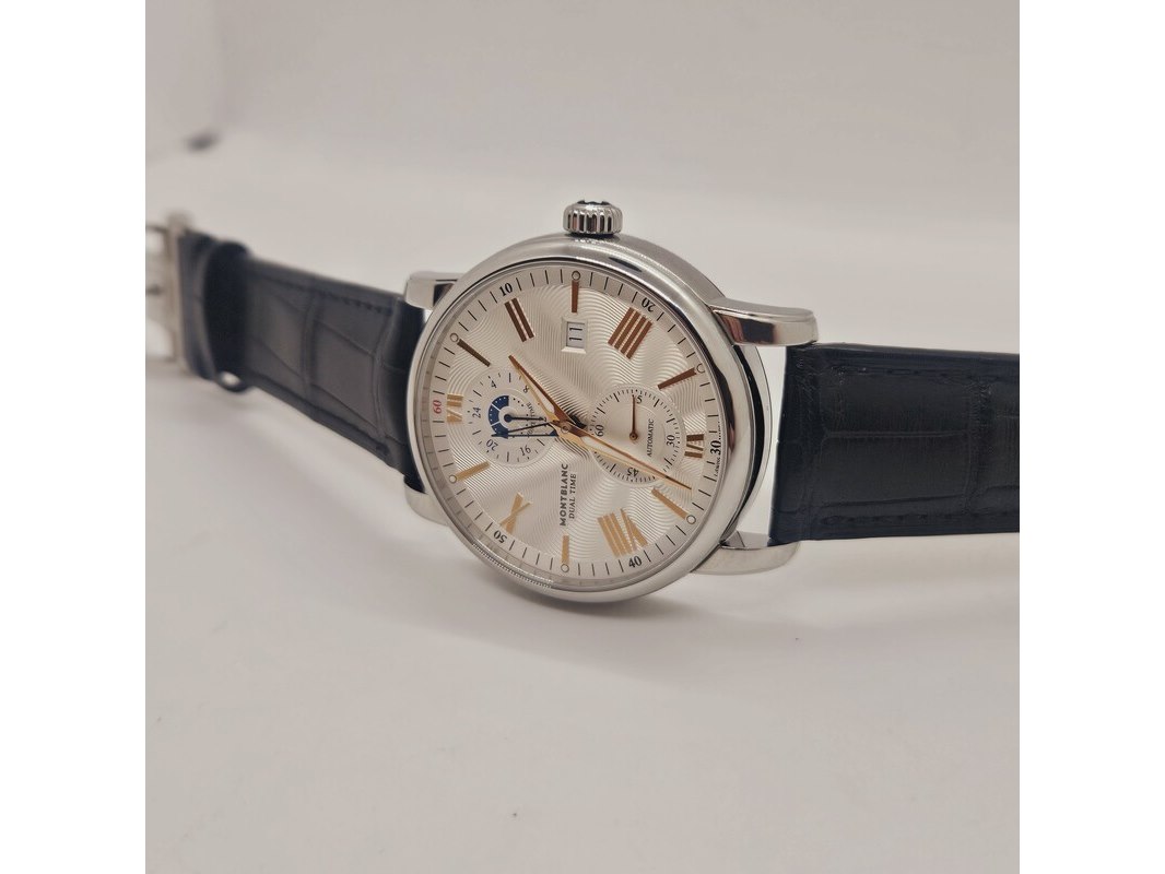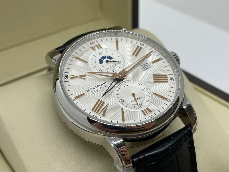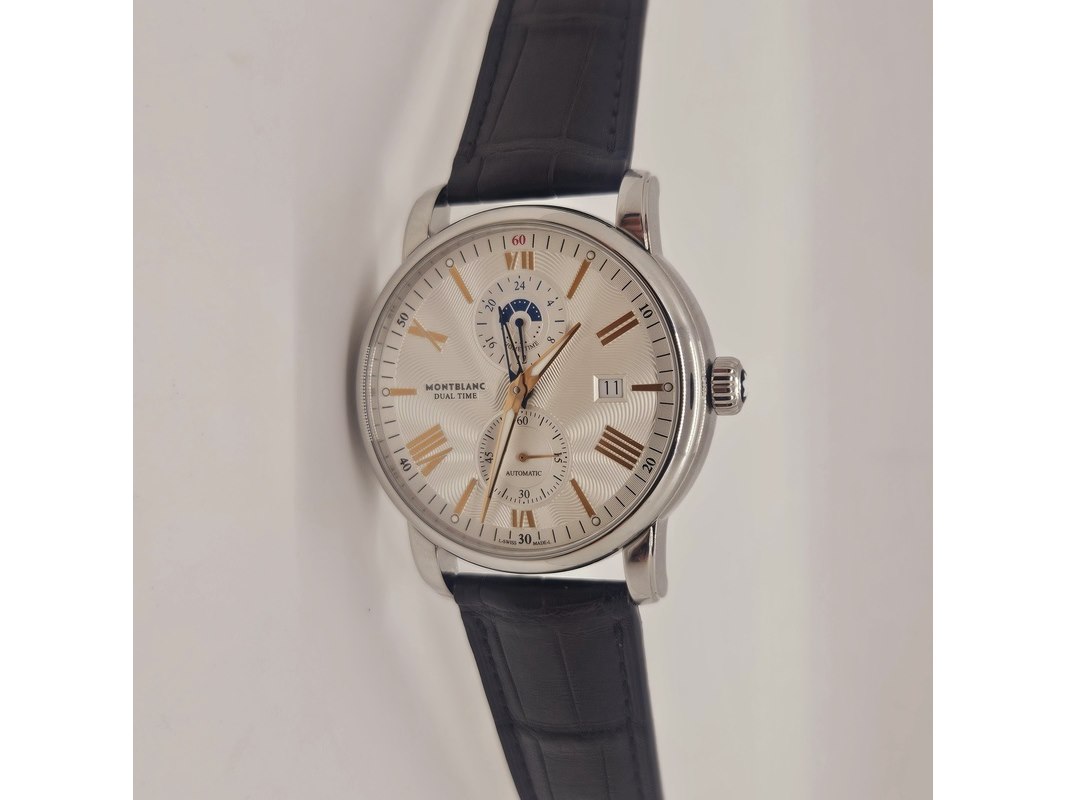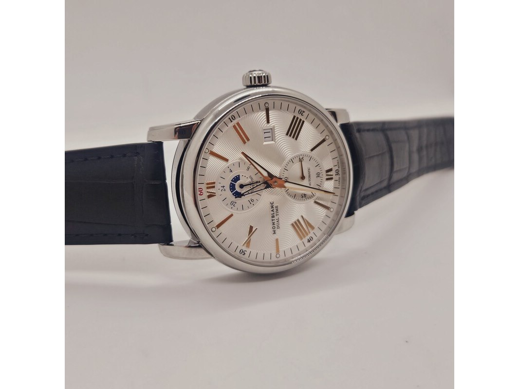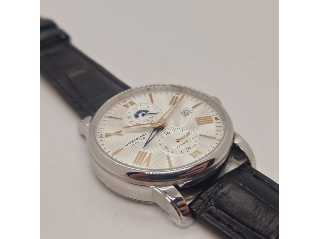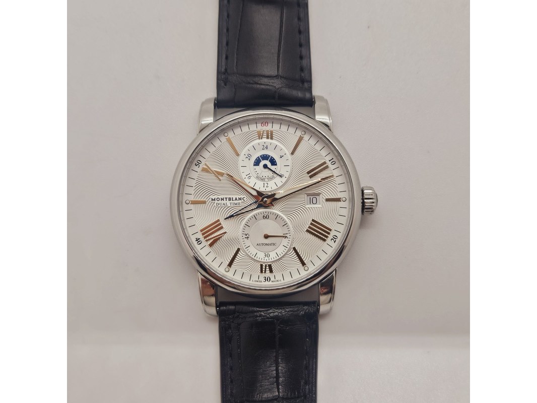 Product: Montblanc 4810 Dual Time automatisch herenhorloge Afmeting: 42mm Specificaties: Automatisch uurwerk loopt goed. Merk: Montblanc. Model: 4810 Dual Time. Ref. nummer: 114857. Caliber: MB-2919. Met Guilloche wijzerplaat, op originele band. In nieuwstaat.