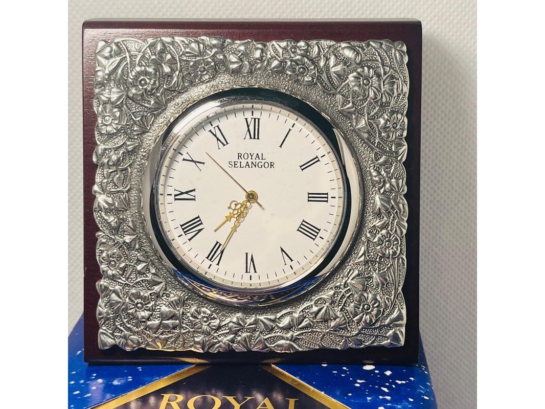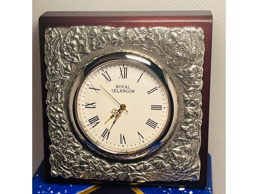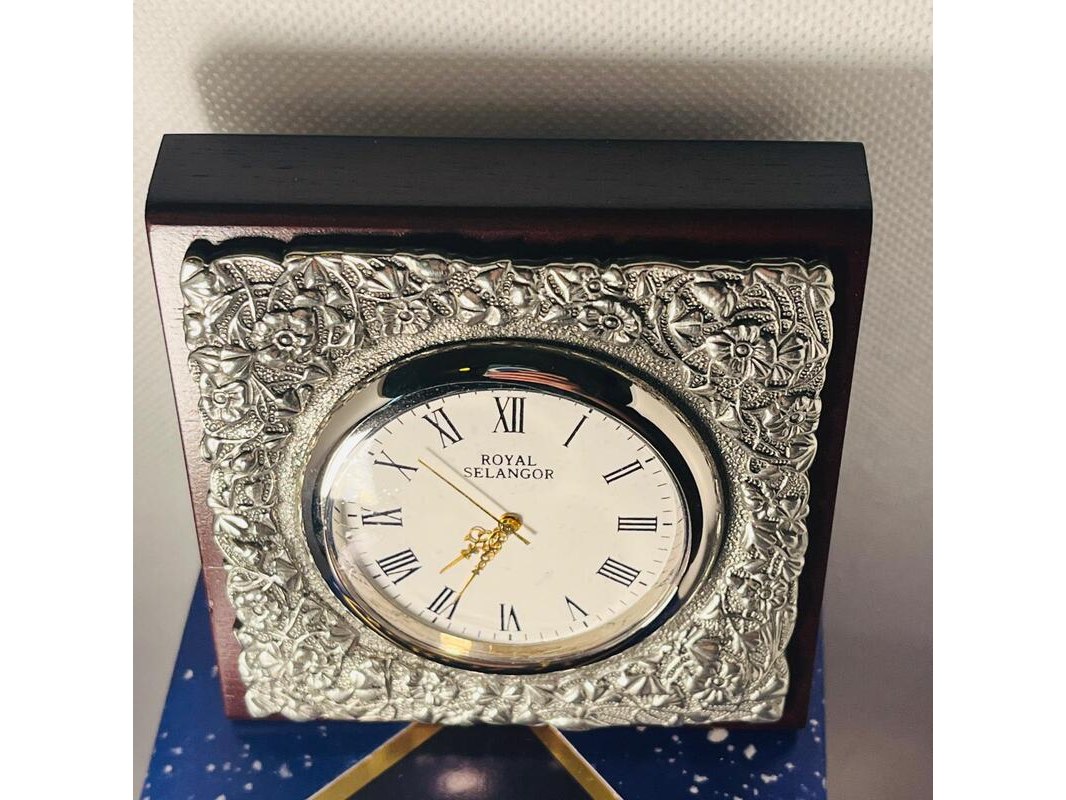 Product: Tafelklok - Zilversmid Paul de Lamerie (1688-1751) Conditie: Nieuw Specificaties: Speciale uitgave van Royal Selangor. Tafelklok met patroon van de 17de eeuwse ontwerper Paul de Lamerie. In pewter op houten uitvoering.