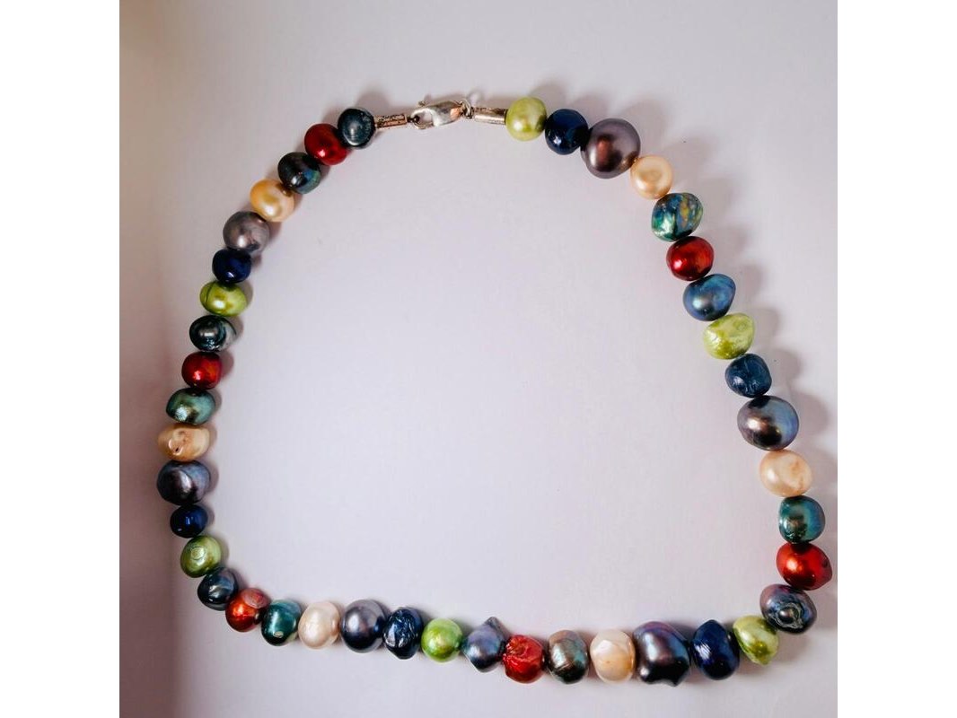 Product: Parelsnoer collier 'Exotic pearl necklace' met 925 zilveren sluiting Specificaties: Verschillende gekleurde zoetwater parels.