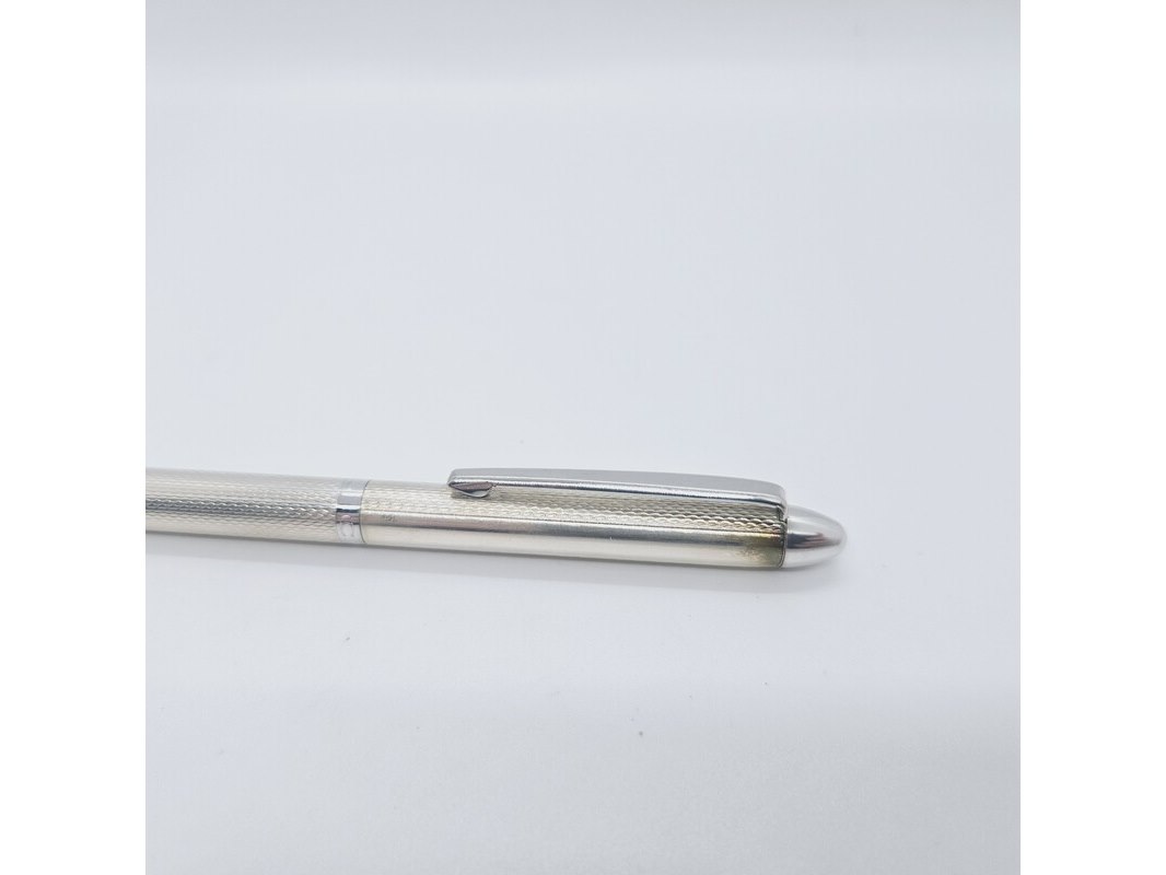 Product: Massieve zilveren balpen - Montblanc Barleycorn model Conditie: Gebruikt Specificaties: Materiaal: 100% massief 925 zilver Zilveren balpen van een Duits merk in een klassieke Barleycorn model o.a. bekend van Montblanc.