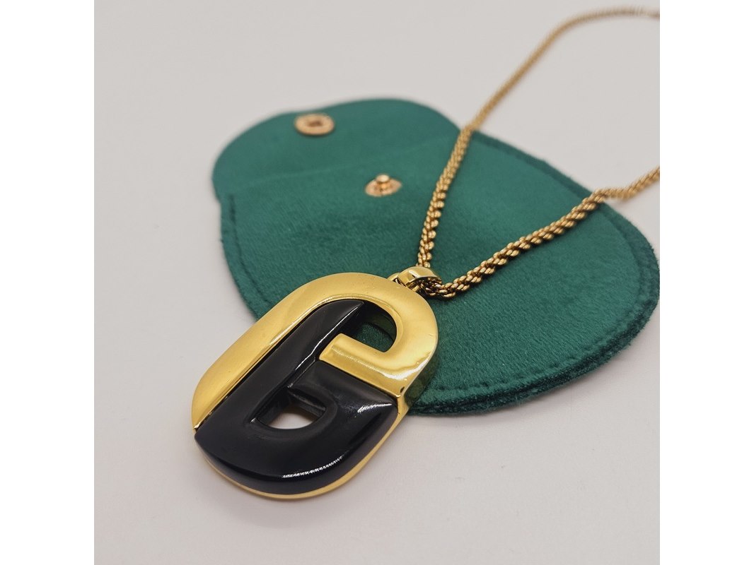 Product: Pierre Balmain goldplated pendant collier Conditie: Gebruikt Specificaties: Merk: Pierre Balmain. Goldplated collier met pedant. Inclusief groene sieraden etui. Totale lengte inclusief sluiting: 45cm.