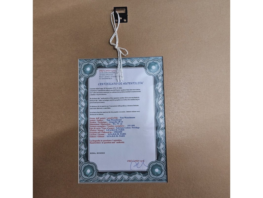 Product: Tom Wesselman Lithograaf ''Smoker IV'' Afmeting: 83cm x 63cm Conditie: Nieuw Specificaties: Limited edition 315/450 Uitgever Oro Cartier, wordt nieuw ingelijst geleverd met een zwart houten frame.