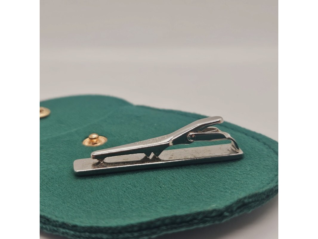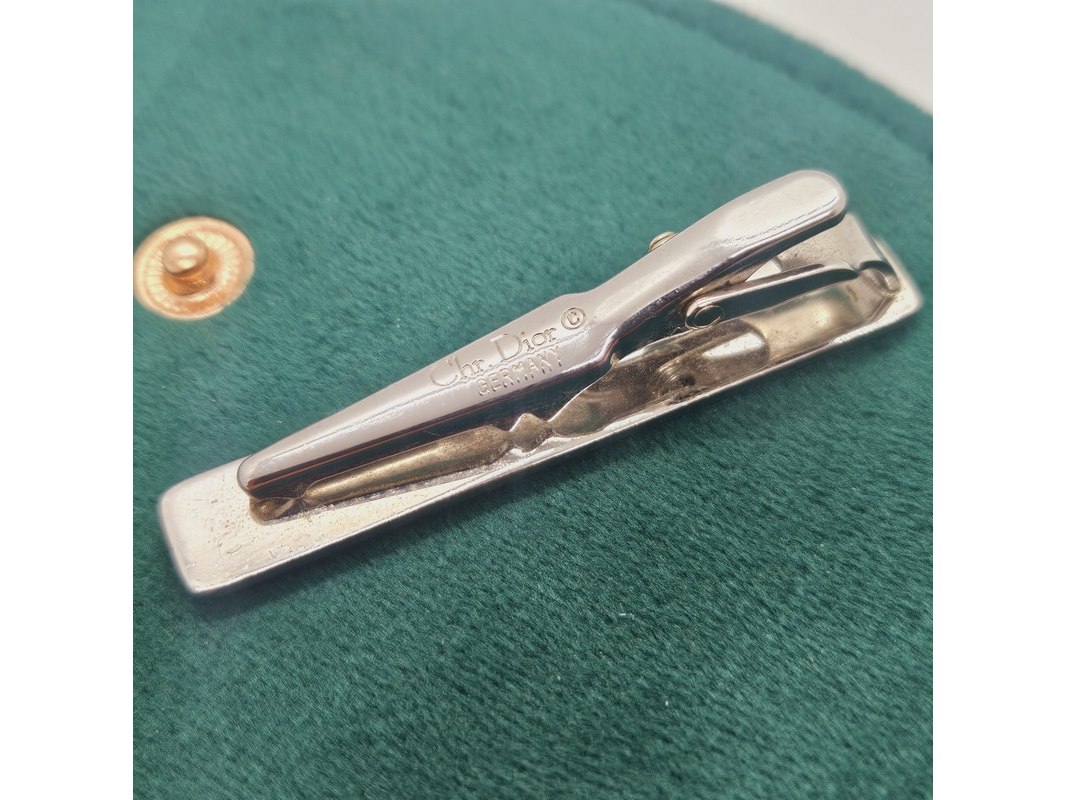 Product: Christian Dior goldplated tie clip - Two tone Afmeting: 5cm Conditie: Gebruikt Specificaties: Merk: Christian Dior. Goldplated. Tie clip / stropdas clip. Inclusief groene sieraden etui.