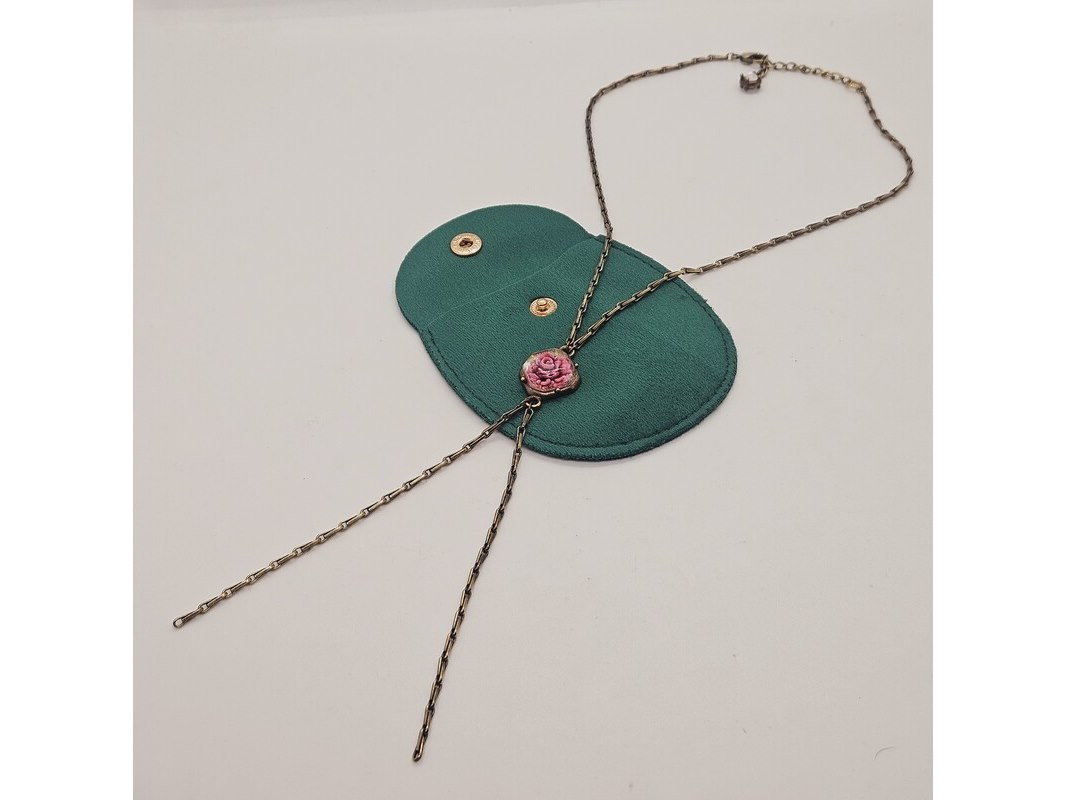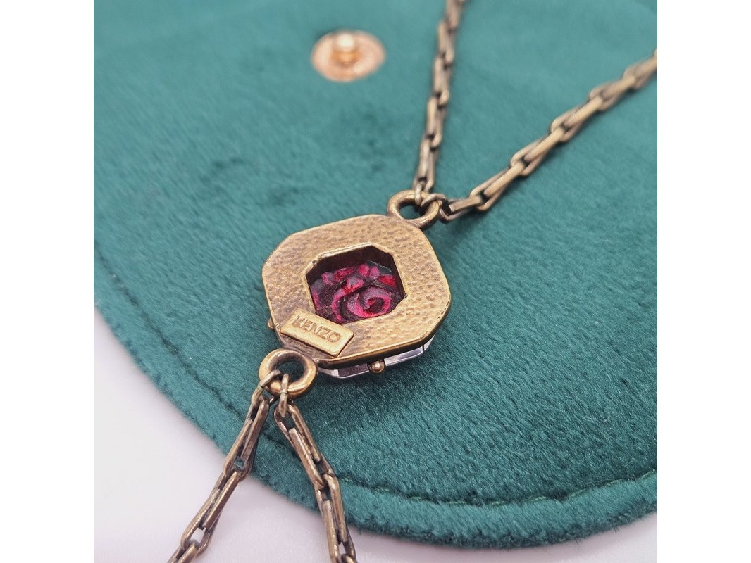 Product: Kenzo pendant collier met bloem Conditie: Gebruikt Specificaties: Merk: Kenzo. Collier met bloem pendant. Inclusief groene sieraden etui. Totale lengte inclusief sluiting: 45cm.