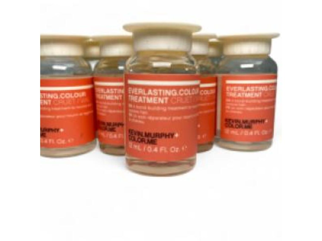 Product: Kevin.Murphy Everlasting colour treatment - Set van 8 flesjes Afmeting: 8 x 12ml Conditie: Nieuw Specificaties: Versterk en bescherm je gekleurde haar met deze professionele, herstellende kuur van het salonmerk KEVIN.MURPHY. Dit is een "bond-building" treatment, speciaal ontworpen om de interne haarstructuur te herstellen die kan beschadigen door chemische behandelingen zoals kleuren. Elk flesje van 12 ml biedt een intensieve behandeling die het haar voedt, de haarkleur verzegelt om vervaging tegen te gaan en de algehele gezondheid en glans spectaculair verbetert. Het is de perfecte oplossing om de levendigheid van je kleur te verlengen en je haar te beschermen tegen schadelijke invloeden.