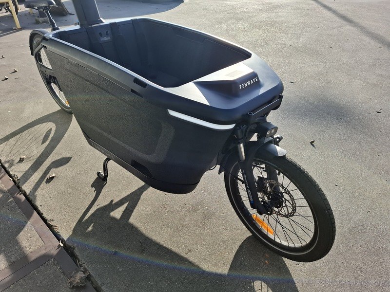 Merk: Tenways cargo one Product: Bakfiets Kleur: Zwart Afmeting: Frame 50 cm Conditie: Gebruikt Specificaties: Ex demomodel Voorzien van: - Trapondersteuning - 26 inch bandenmaat - Schijfremmen - Getande riem - Verstelbaar stuur