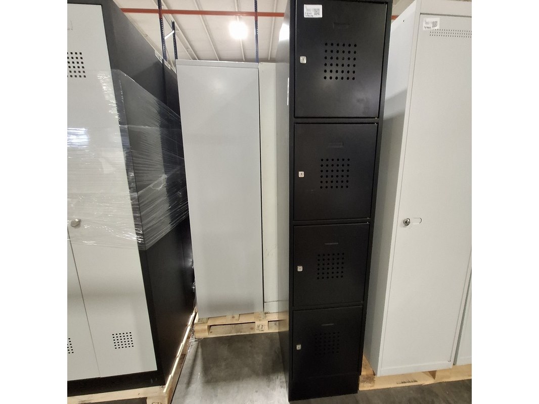 Product: Lockerkast Afmeting: o.a. hxbxd ca. 180x60x50 cm Specificaties: Diverse afmetingen. Diverse gebruiksporen en beschadigingen. Exclusief palletkist.
