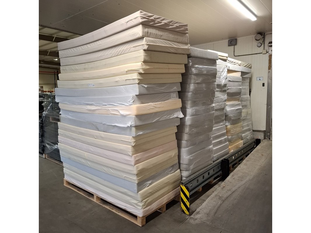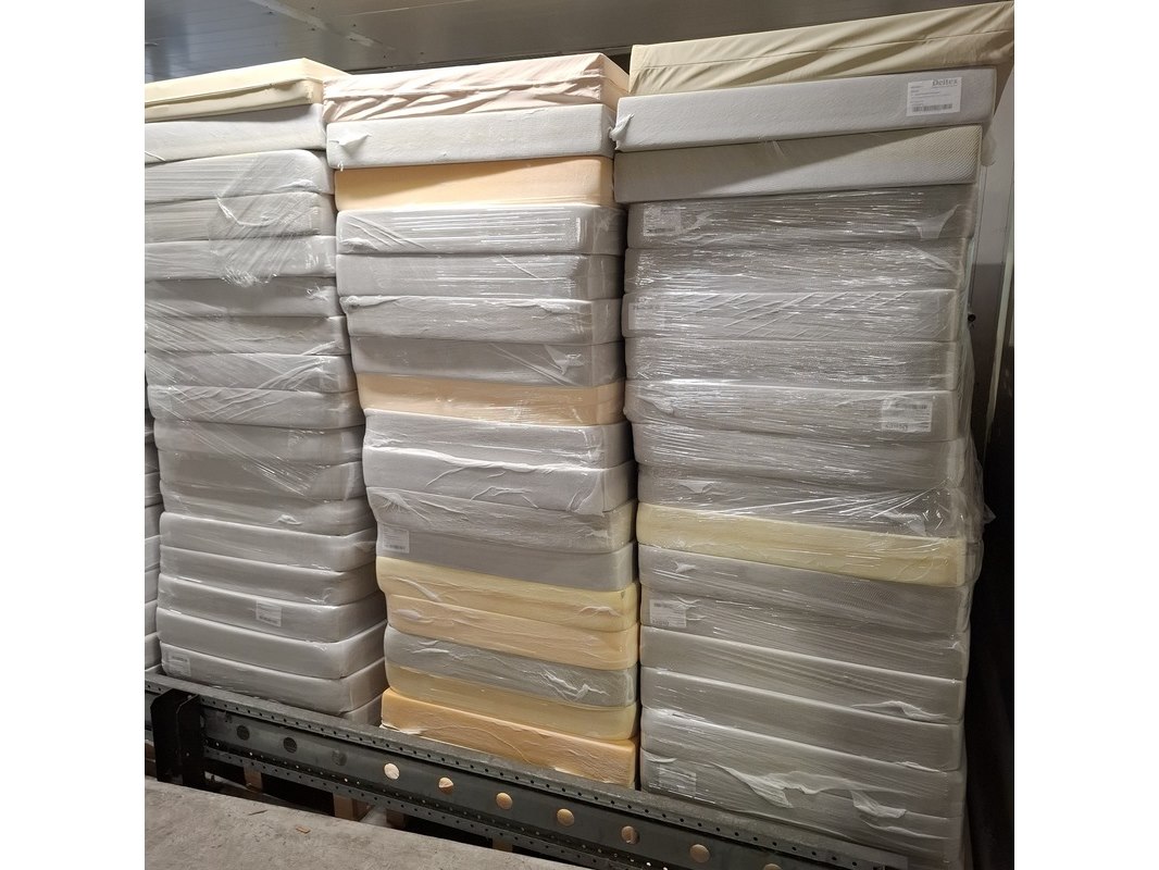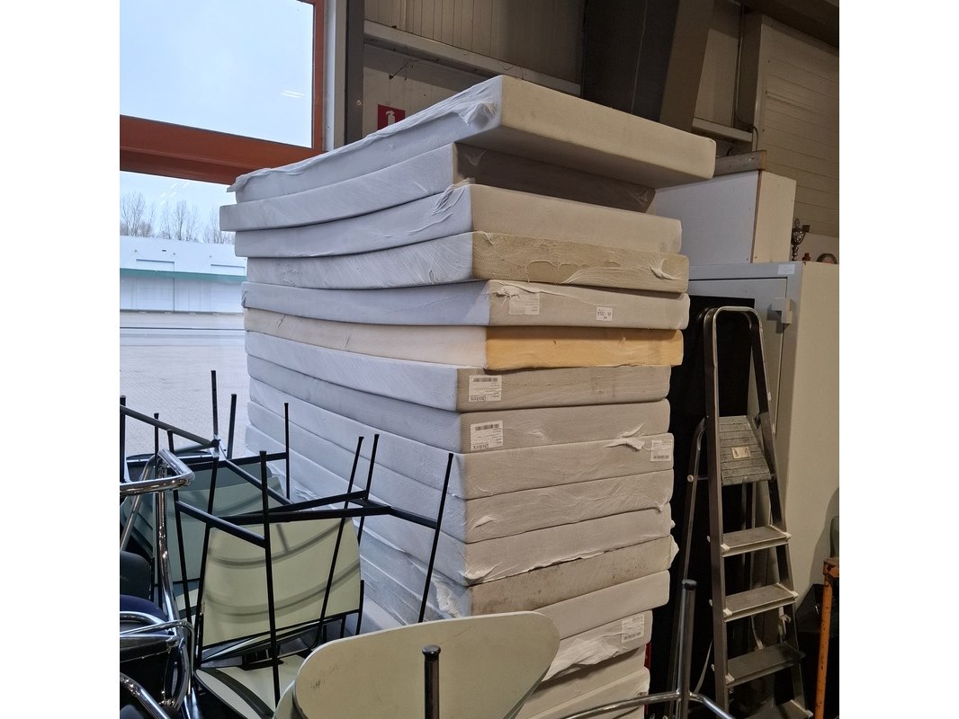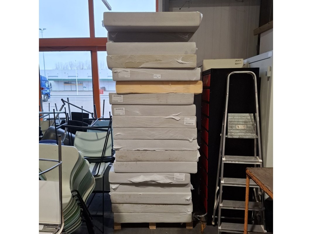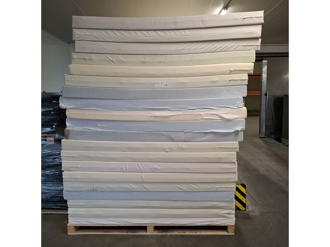 Product: Partij matrassen Afmeting: lxb ca. 200x90 cm Conditie: gebruikt Specificaties: Diverse soorten en maten. Bestaande uit diverse soorten matrassen, zonder hoes. Vuil. Staat en conditie onbekend. Exclusief pallets.