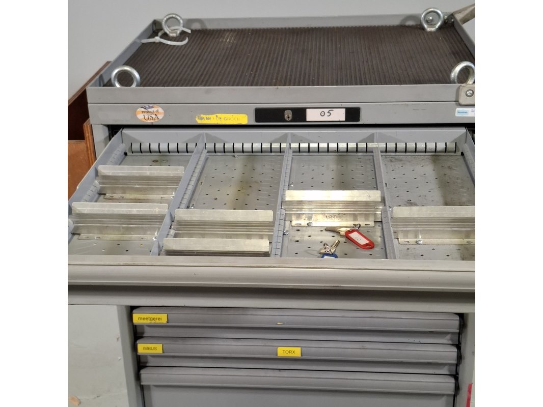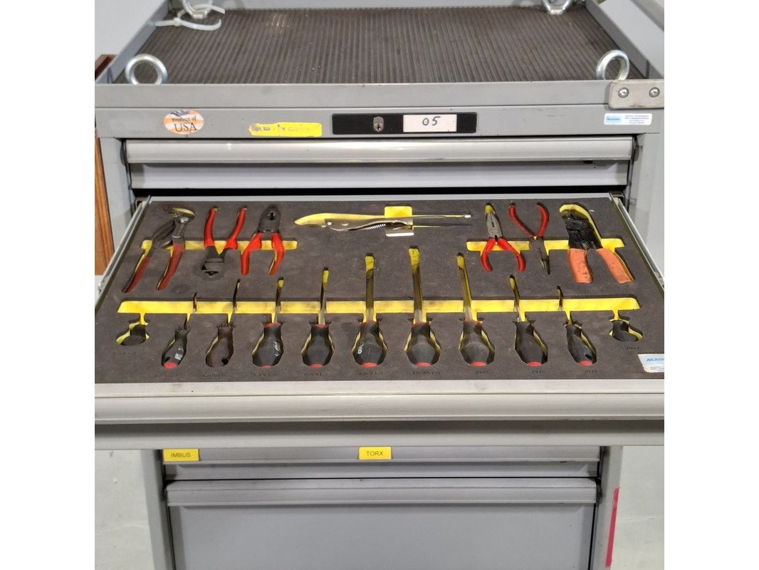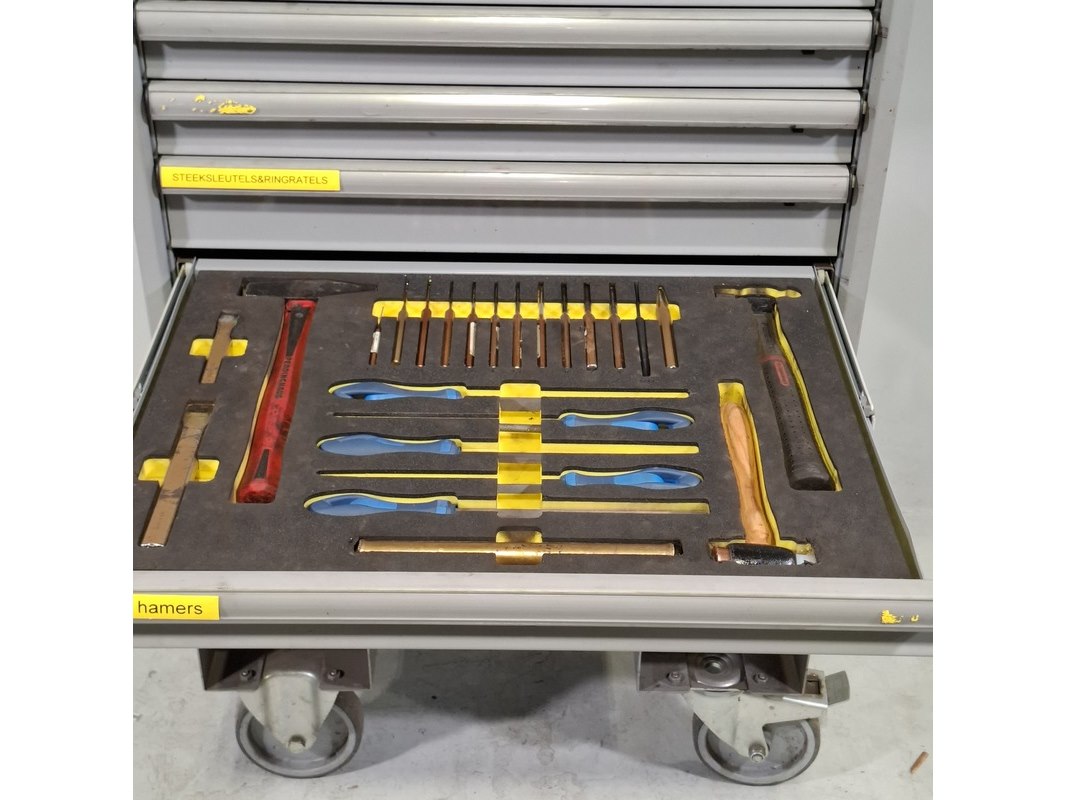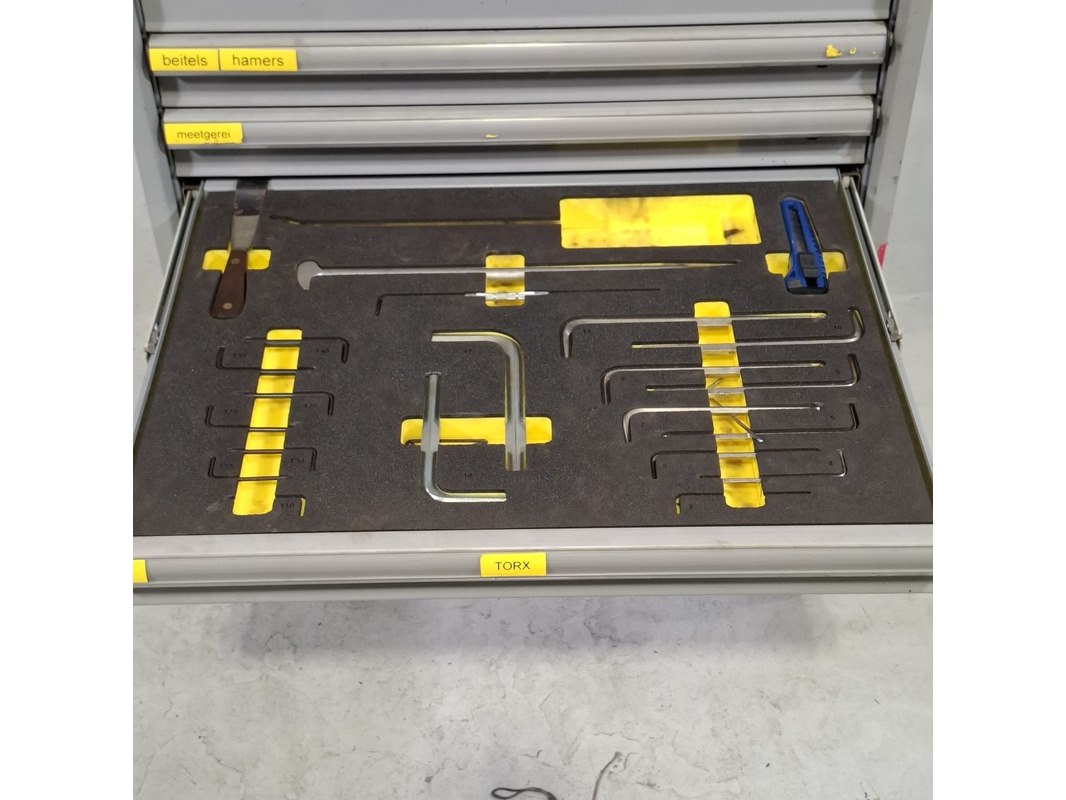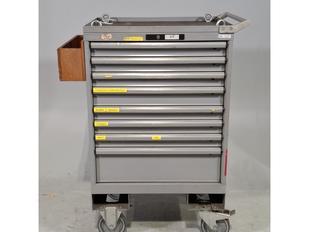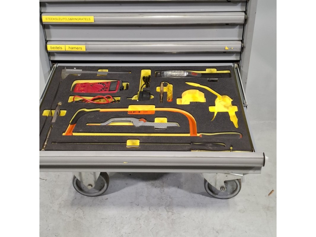 Merk: Lista Product: Gereedschapswagen met inhoud Afmeting: hxbxd ca. 118x80x57 cm Conditie: gebruikt Specificaties: Inhoud incompleet. Bestaande uit o.a. tangen, schroevendraaiers, steeksleutel, doppenset met ratel, etc
