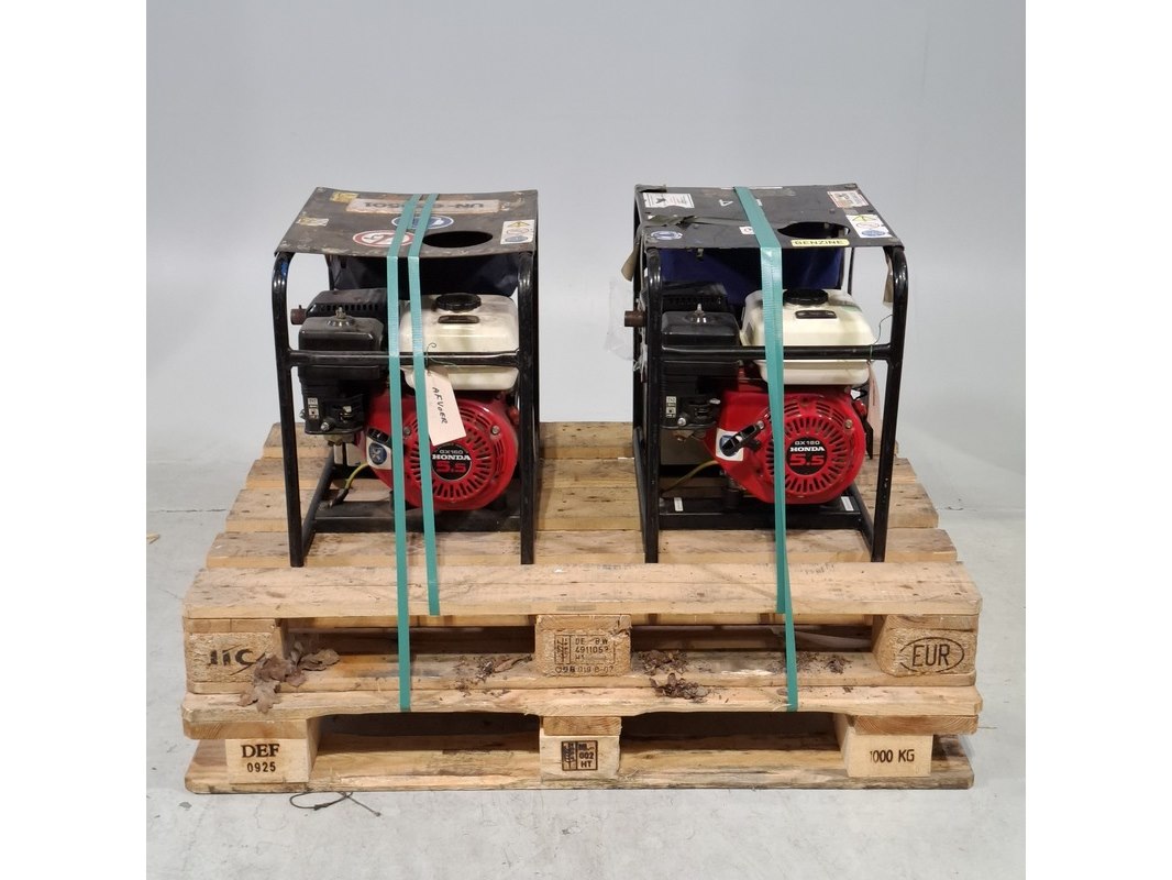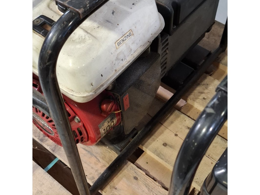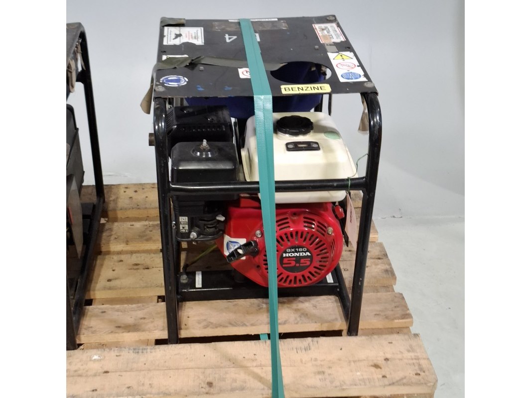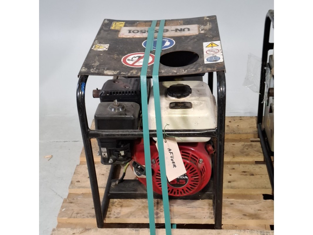 Product: Aggregaat Afmeting: lxbxh ca. 63x40x50 cm Conditie: gebruikt Specificaties: Uitgerust met Honda GX 160 5.5 motor Typeplaat ontbreekt Volgens opgave 2kW vermogen Technische staat en compleetheid onbekend. Exclusief pallet.