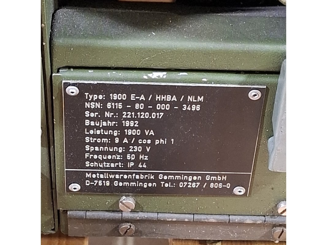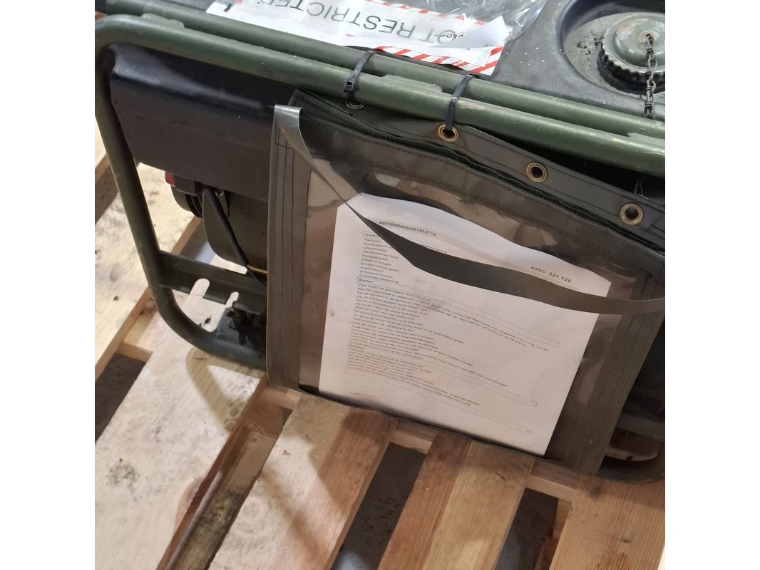 Product: Aggregaat Afmeting: lxbxh ca. 65x39x43 cm BouwJaar: 1992 Conditie: gebruikt Specificaties: 230V 50Hz Afgelezen tellerstand 305. Technische staat en compleetheid onbekend. Exclusief palletkist.