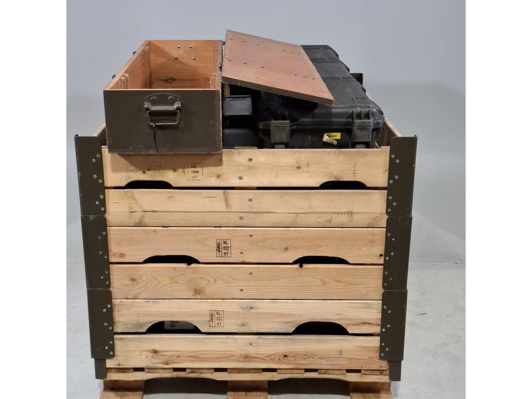 Merk: o.a. Minelab Product: Transportkoffer en 1x kist Conditie: gebruikt Specificaties: Diverse afmetingen. Exclusief palletkist.