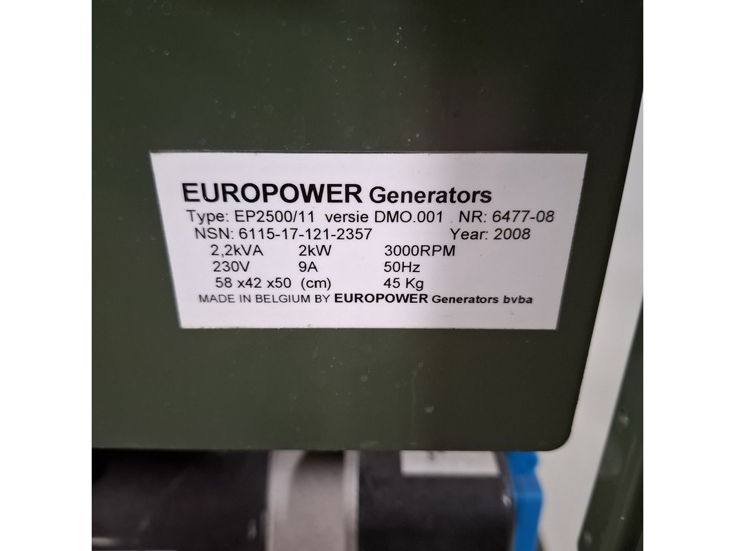 Merk: Euro Power Product: Aggregaat Afmeting: lxbxh ca. 58x42x50 cm Conditie: gebruikt Specificaties: 2kW 230V 50Hz 9A Eigen gewicht ca. 45 kg Technische staat en compleetheid onbekend. Exclusief palletkist.