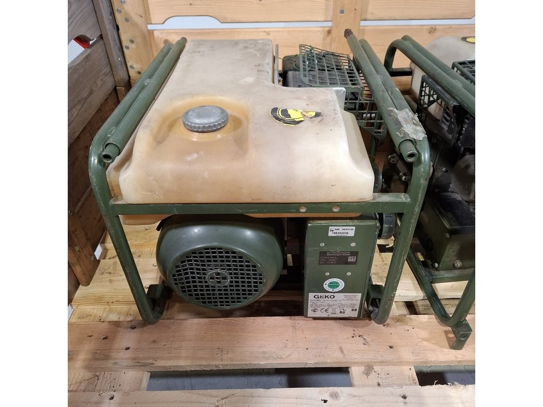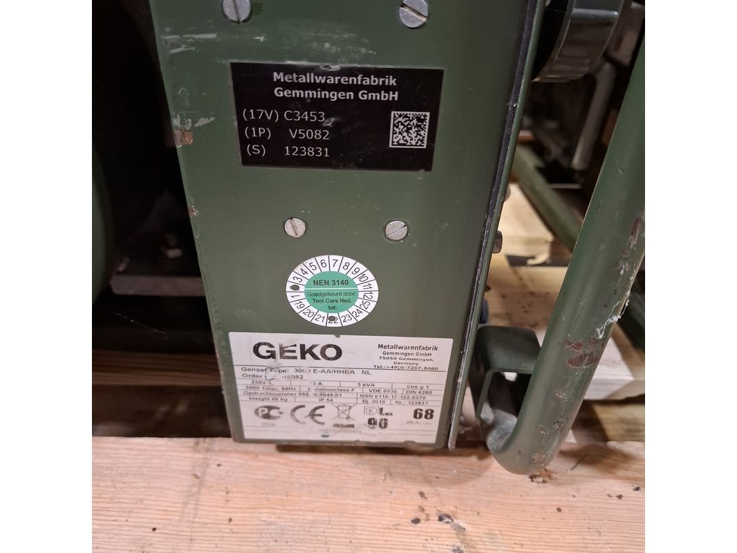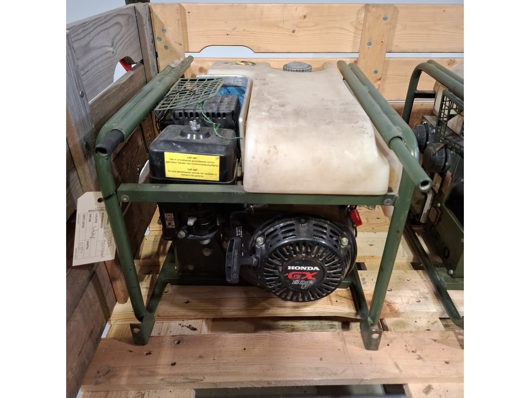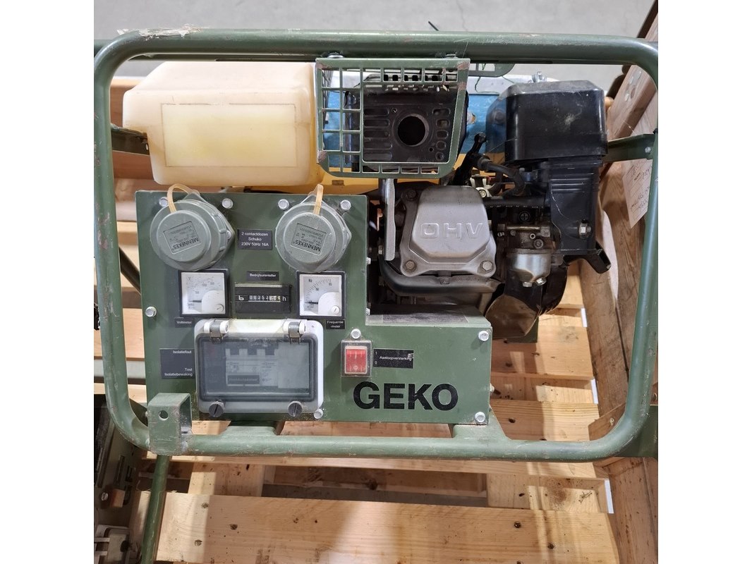 Merk: Geko Product: Aggregaat Conditie: gebruikt Specificaties: 230V 50Hz 13A 3 kVa Eigen gewicht ca. 28 kg Voorzien van Honda GX200 motor Technische staat en compleetheid onbekend. Exclusief palletkist.