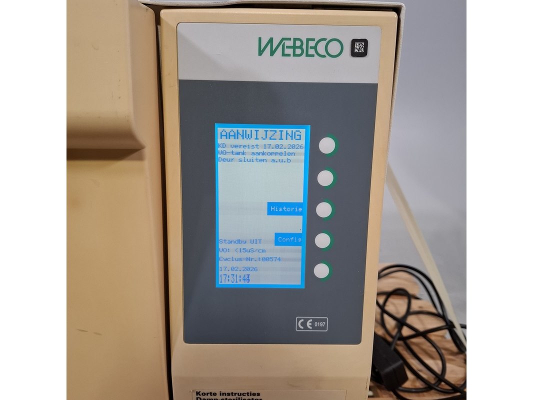 Merk: Webeco Product: Autoklaaf machine Afmeting: lxbxh ca. 62x50x58 cm Conditie: gebruikt Specificaties: 230V 50Hz Technische staat en compleetheid onbekend. Exclusief pallet.