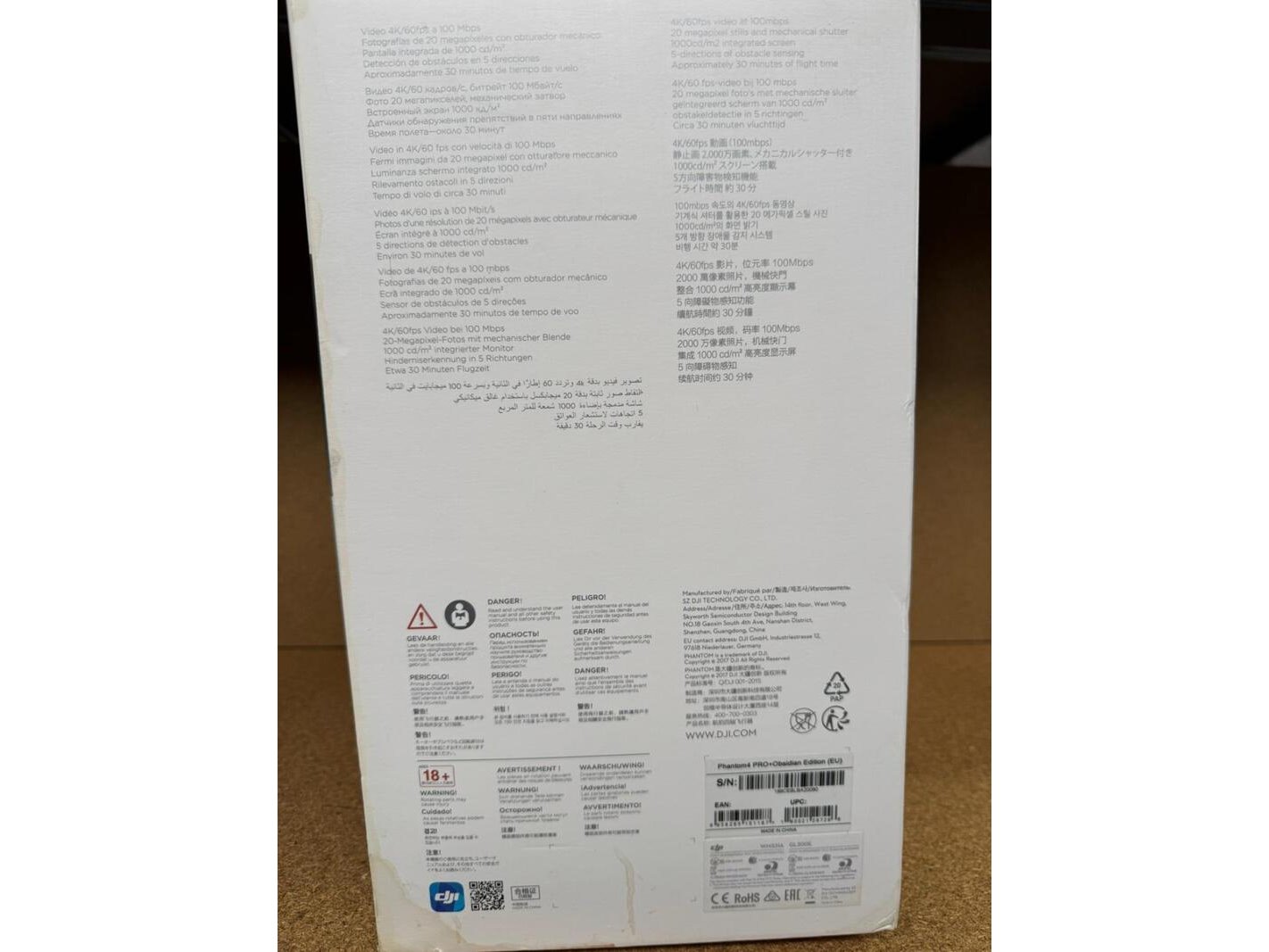 Merk: DJI Product: DJI Phantom 4 Pro+ Obsidian Kleur: zwart Materiaal: Kunststof Afmeting: Diagonale maat (zonder propellers):350 mm(35 cm) BouwJaar: 2017 Conditie: Demo Model Specificaties: Dit betreft de Plus (+) editie van de Phantom 4 Pro Obsidian, dit betekent dat de afstandsbediening geleverd wordt inclusief geïntegreerde 5.5 inch FPV monitor. De reguliere editie van de Phantom 4 Pro Obsidian heeft een afstandsbediening met een smartphone/tablet-mount. DJI Phantom 4 Pro+ DJI Phantom 4 Pro is een Ready-To-Fly quadcopter voorzien van GPS, unieke Auto-Follow modus en obstakel ontwijkingstechnologie. Dankzij de 4K Ultra-HD camera met 3-assige gimbal is het systeem bij uitstek geschikt voor luchtfotografie. Pro DJI's Pro serie onderscheidt zich van de reguliere Phantom 4 op het gebied van hardware door o.a. een betere camera, betere accu en extra sensoren. Ook is de Phantom 4 Pro uitgerust met nieuwe vliegmodussen. Aircraft De Phantom 4-serie is voorzien van een gestroomlijnd design, dat zo is ontworpen dat het zwaartepunt dichter bij het horizontale niveau van de propellers ligt. Hierdoor scoort de Phantom 4 beter op flexibiliteit en reactiesnelheid ten opzichte van zijn voorgangers. De body van de Phantom 4 is gemaakt van een materiaal met een magnesium kern. Deze ijzersterke kern verhoogt de stijfheid en starheid van het materiaal zonder concessies te maken op de factor gewicht. Adviesprijs: 2000 Motoren DJI Phantom 4 Pro is uitgerust met 4 krachtige motoren. De motoren zijn niet alleen geoptimaliseerd om efficiënter om te gaan met de accu, maar zijn ook hoger geplaatst op de uiteindes van de armen. Hierdoor komen de propellers niet snel in beeld als de drone snelheid maakt en naar voren leunt. Propellers Net als de Phantom 4 heeft de Pro-versie ook de bekende 'Push-and-Release'-propellers, die u snel monteert op de motoren. Een propeller maakt u vast met een simpele druk en korte draai in plaats van iedere propeller vast te moeten draaien. Betere camera DJI Phantom 4 Pro is voorzien van een verbeterde camera met mechanische sluiter en grote 1 inch sensor. De camera registreert video in 4K Ultra HD op 60 frames per seconde (fps) en maakt foto's met een resolutie van 20 megapixel. Foto De camera van de Phantom 4 Pro maakt foto's van 20 megapixel. De foto's kunnen worden opgeslagen als JPG, maar ook als DNG/RAW. Met name laatstgenoemd bestandsformaat biedt extra mogelijkheden voor nabewerking door professionele fotografen via programma's als Adobe Photoshop en Lightroom. Video De camera van de Phantom 4 Pro registreert video in 4K Ultra-HD met 60fps en 1080p Full HD met 120fps. Opslag Opgenomen camerabeelden worden opgeslagen op een MicroSD-geheugenkaart en staan dus razendsnel op uw computer. Een MicroSD-geheugenkaart kan maar liefst tot 64 GB aan foto's en video's bewaren. Gimbal De Phantom 4-serie is uitgerust met een 3-assige gimbal. De gimbal zorgt ervoor de camera altijd in dezelfde positie blijft hangen, ook al beweegt de drone door verplaatsing of door de wind. Dankzij de gimbal kunt u uiterst stabiele beelden maken en heeft u alles in huis voor professionele luchtopnames. De gimbal van de Phantom 4 is met behulp van een metaal U-frame geïntegreerd in het ontwerp van de body wat niet alleen zorgt voor een betere look, maar ook voor een betere stabilisatie. Gimbal Control Unit De bewegingen van de gimbal worden gecontroleerd door een Gimbal Control Unit, welke in constante communicatie staat met de Gimbal Inertial Measurement Unit en Phantom 4’s Flight Controller. Op deze manier kan de gimbal zich voorbereiden op acties nog voordat ze werkelijk plaats vinden. FPV Met DJI's Phantom 4 Pro kunt u in First Person View (FPV)-view live meekijken met de camerabeelden tijdens de vlucht van de drone. Met de geïntegreerde Lightbridge technologie heeft u in HD kwaliteit een reikwijdte tot wel 7 kilometer! 2.4Ghz en 5.8Ghz DJI's vernieuwde LightBridge schakelt tussen een 2.4Ghz en 5.8Ghz verbinding, afhankelijk van de omgeving en signaalsterkte. Auto Follow Phantom 4 Pro heeft een Auto Follow-modus waardoor de drone een (bewegend) object kan volgen op basis van 3D object-herkenning. In tegenstelling tot de concurrentie gebruikt DJI objectherkenning om een bewegend object te herkennen in plaats van het GPS-signaal van een smartphone. Hierdoor kan de drone het object niet alleen exact volgen, maar kan de camera ook gericht blijven op het object. Met deze nieuwe techniek onderscheidt de Phantom 4 zich van vergelijkbare drones van andere merken. Watch me De drone heeft een Watch Me-modus waardoor de camera gericht blijft op een object. Ook al beweegt de drone in een richting de camera blijft gericht op het ingestelde object. Extra sensoren DJI Phantom 4 Pro kan nog beter om zich heen kijken, want de quadcopter is uitgerust met extra sensoren. Zo heeft de Pro-versie niet alleen sensoren aan de voorkant en aan de onderkant, maar ook twee visuele sensoren aan de achterzijde en aan de zijkant van het apparaat bevinden zich nieuwe infrarood-sensoren. Obstakels ontwijken DJI Phantom 4 is uitgerust met de laatste obstakel-ontwijktechnologie. Via de ingebouwde sensoren is de drone in staat om zijn omgeving te verkennen en te reageren op obstakels op de route. Deze technologie is alleen te zien bij de laatste generatie drones. GPS De Phantom 4 Pro is voorzien van Global Positioning System (GPS) technologie. Dankzij GPS kan de drone exacte bepalen waar hij vliegt en is hij in staat om vooraf uitgestippelde vliegroutes te volgen. Ook kan de drone hierdoor op een vaste locatie zweven. Deze hover-mogelijkheid biedt met name voor luchtfotografie uitkomst. Return To Home Dankzij de GPS-technologie is de Phantom 4 Pro drone in staat om terug te keren naar zijn vertrekpunt. Met een druk op de knop zal de drone automatisch landen op de plek waar de quadcopter op steeg. Dankzij de eerder besproken obstakel ontwijktechnologie zal de Phantom 4 Pro alle mogelijk obstakels op de weg terug automatisch ontwijken.