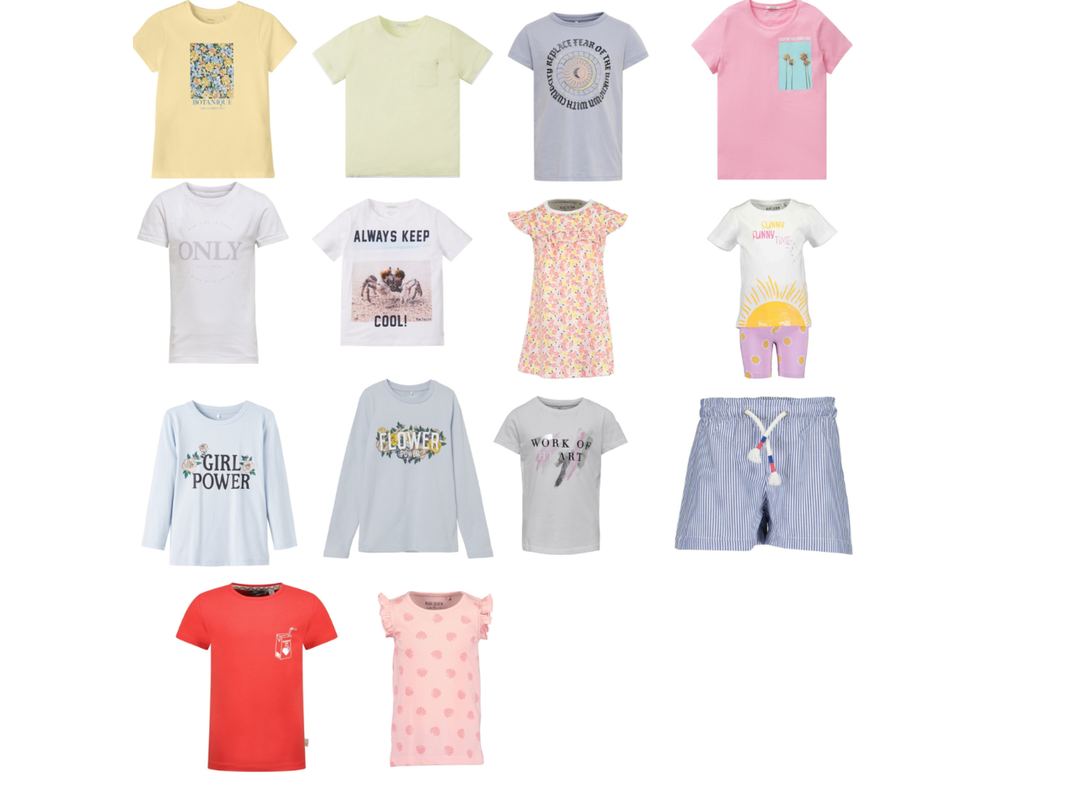 Merk: Noppies, Moodstreet, Babyface etc. Product: Kinderkleding Materiaal: Diverse Afmeting: Diverse maten en modellen Conditie: nieuw Specificaties: Partij van ca. 500 stuks nieuwe kinderkleding van diverse bekende merken, waaronder Noppies, Moodstreet, Babyface en vergelijkbare labels. De partij bestaat uit een gevarieerde mix van kledingstukken in verschillende maten en uitvoeringen. Alle items zijn nieuw en ongedragen. Zie het bijgevoegde bestand voor het volledige en gespecificeerde overzicht van de producten. Totale oorspronkelijke adviesprijs: €10.686