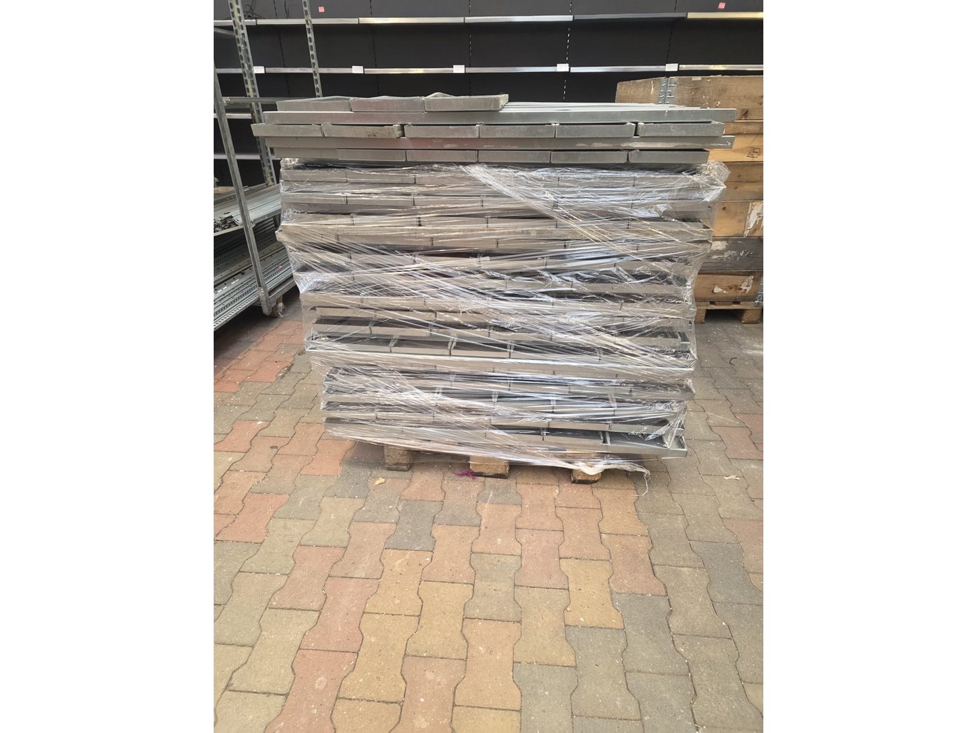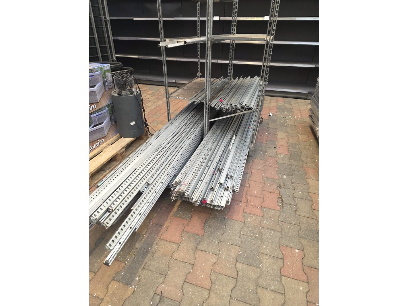 Product: Stellingen Afmeting: 130cm en 100cm breedt en 80cm diep. Conditie: gebruikt Specificaties: Partij stellingen van zo'n 50 meter. De partij bevat zowel stellingen voor 100cm als 130cm breed. Gemiddeld zo'n 5 planken per stelling.