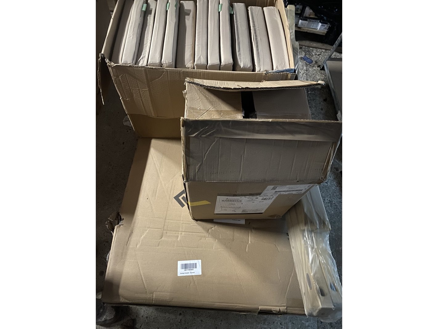 Product: Tuinartikelen Conditie: Nieuw en retourgoederen Specificaties: De partij bestaat uit: hangmat standaard Amazonas, 1x Springos tuintafel (150x90x73cm), Gardenista kussenset en Kitchen Brothers Kamado barbecue. Totaal originele adviesprijzen: €650
