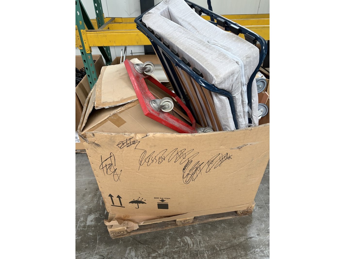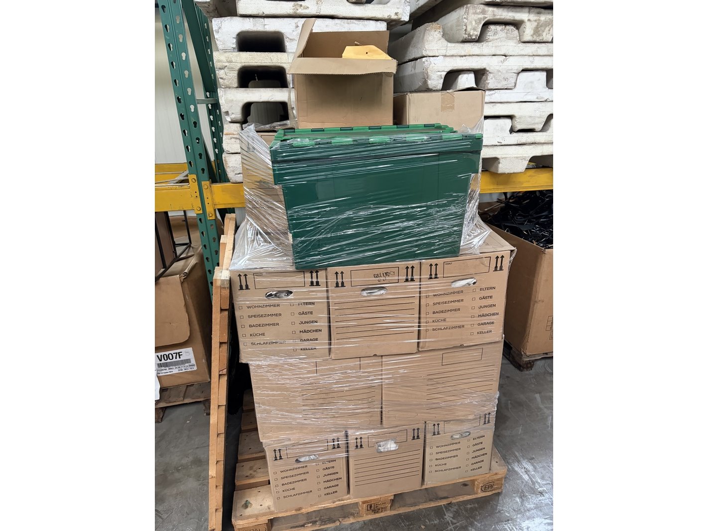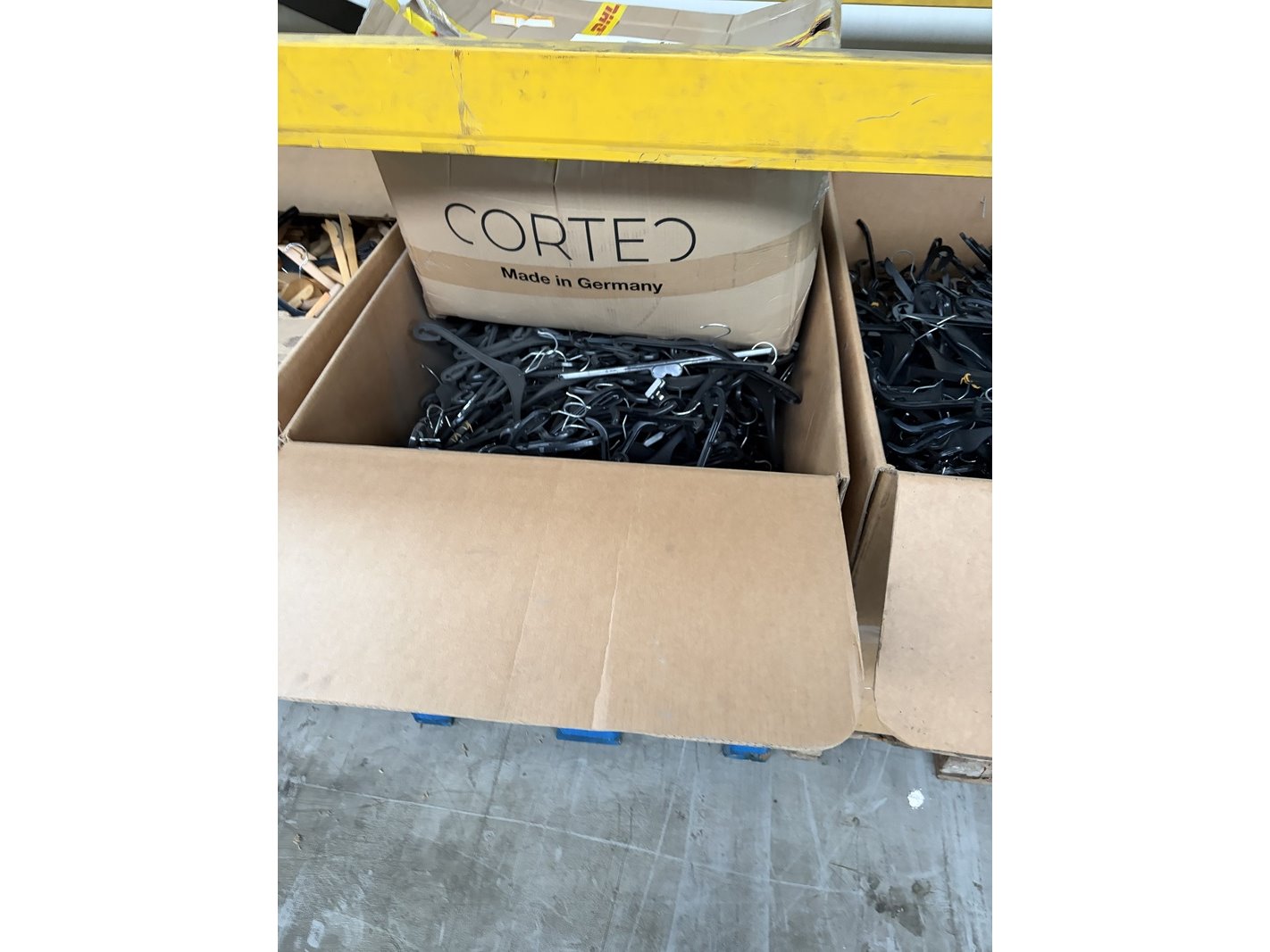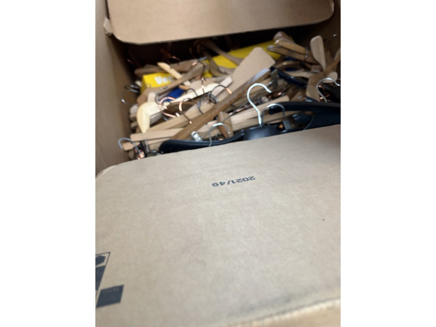 Product: Winkelinventaris, kledinghangers en diversen Conditie: Gebruikt Specificaties: Deze partij omvat dertien pallets met winkelinventaris en overige diverse artikelen. De inhoud bestaat onder andere uit meerdere pallets met kledinghangers, verpakkingsmateriaal, stellingmateriaal, een wijnkoeler en decoratiemateriaal.