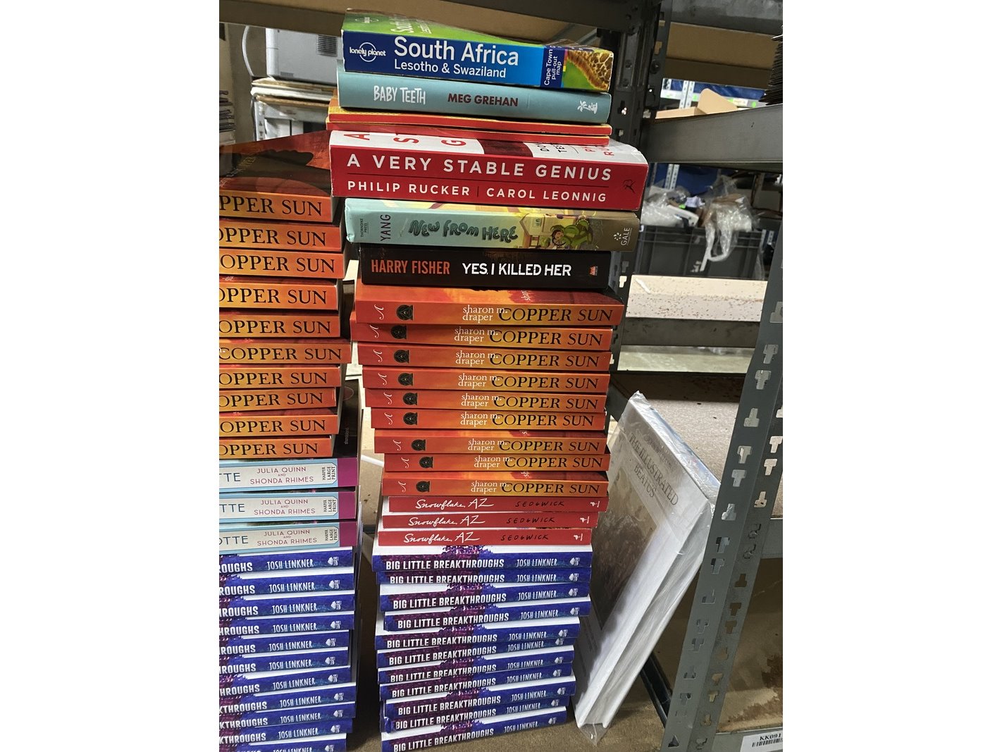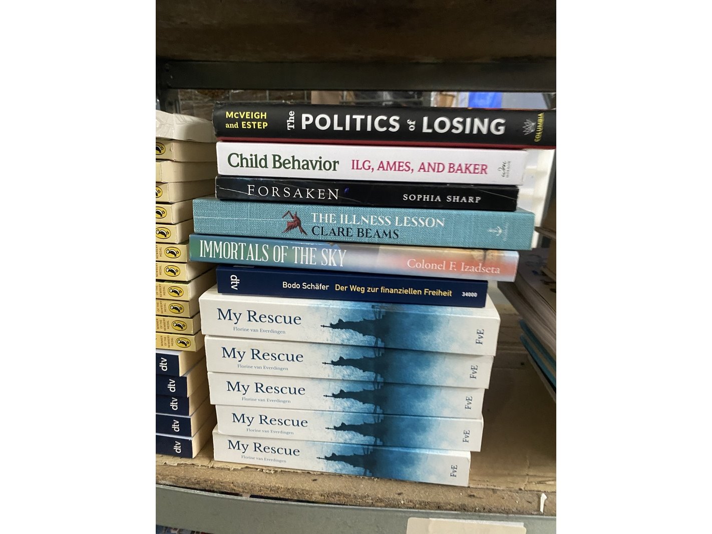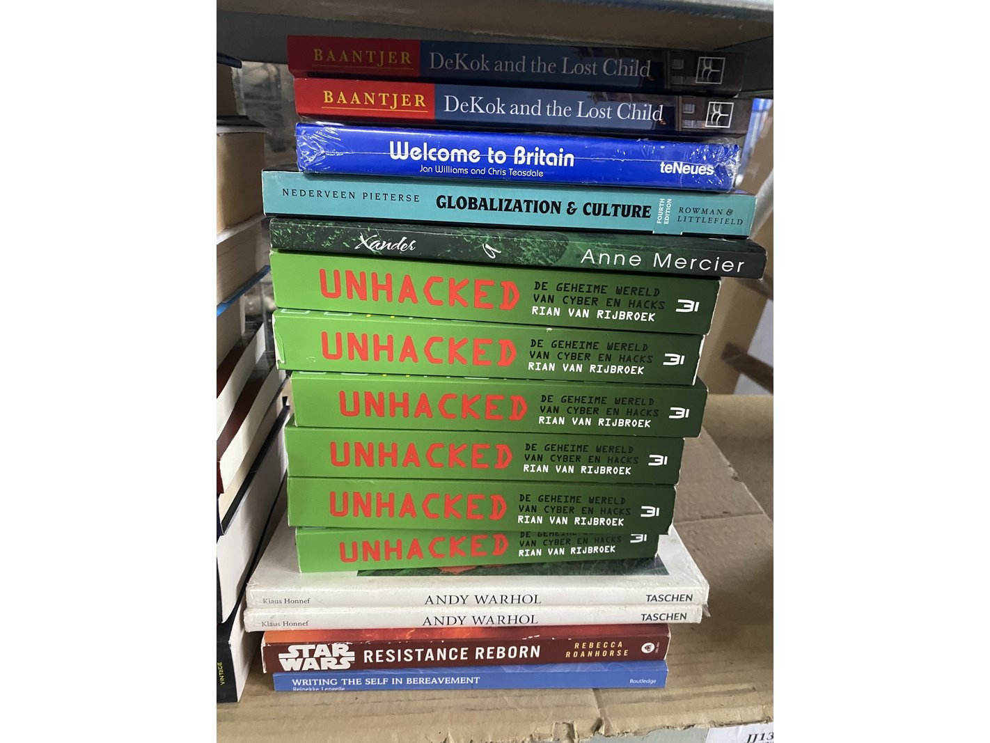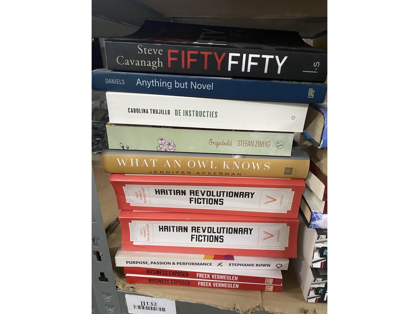 Product: leesboeken Conditie: Nieuw Specificaties: Deze partij omvat 438 leesboeken en 80 agenda’s. De boeken bestaan uit vele verschillende titels en genres. Voor een goed beeld van de variatie en samenstelling van de boeken en agenda’s wordt verwezen naar de bijgevoegde foto’s. Deze maken onderdeel uit van de omschrijving en geven een representatief beeld van de partij.