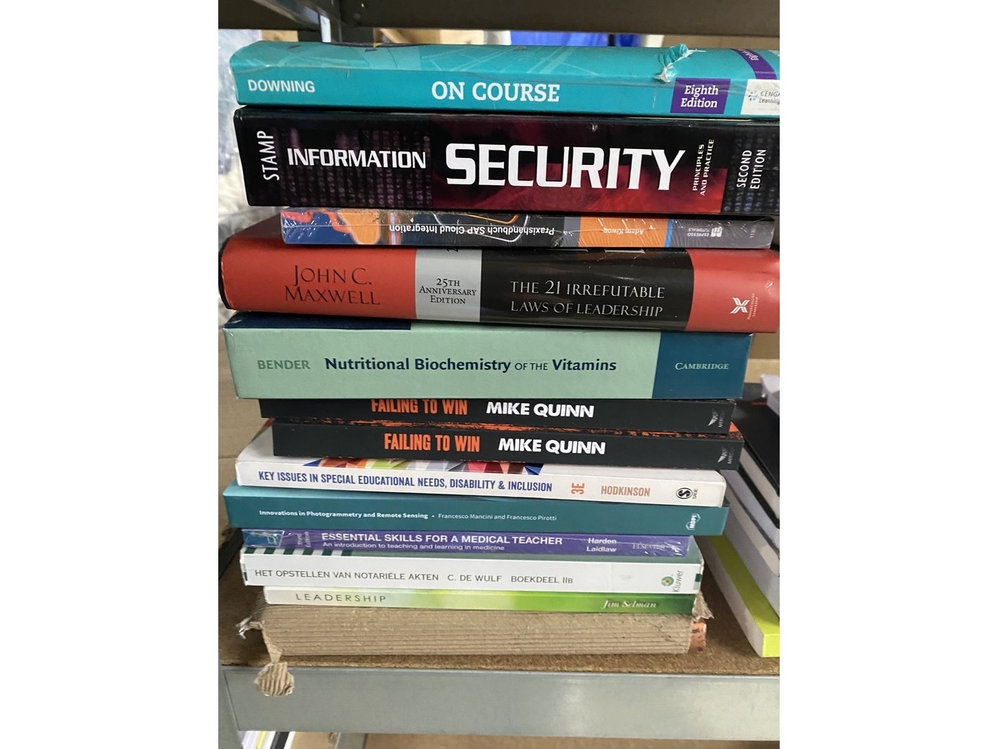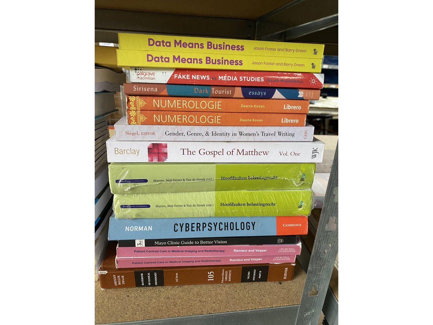 Product: Educatieve boeken en studieboeken Conditie: Nieuw Specificaties: Partij bestaande uit circa 434 educatieve boeken en studieboeken. Deze partij omvat 434 educatieve boeken en studieboeken. De boeken zijn bedoeld voor educatieve doeleinden en bestaan uit verschillende titels en onderwerpen. Voor een goed beeld van de samenstelling en variatie binnen deze partij wordt verwezen naar de bijgevoegde foto’s. Deze maken onderdeel uit van de omschrijving en geven een representatief beeld van de partij.