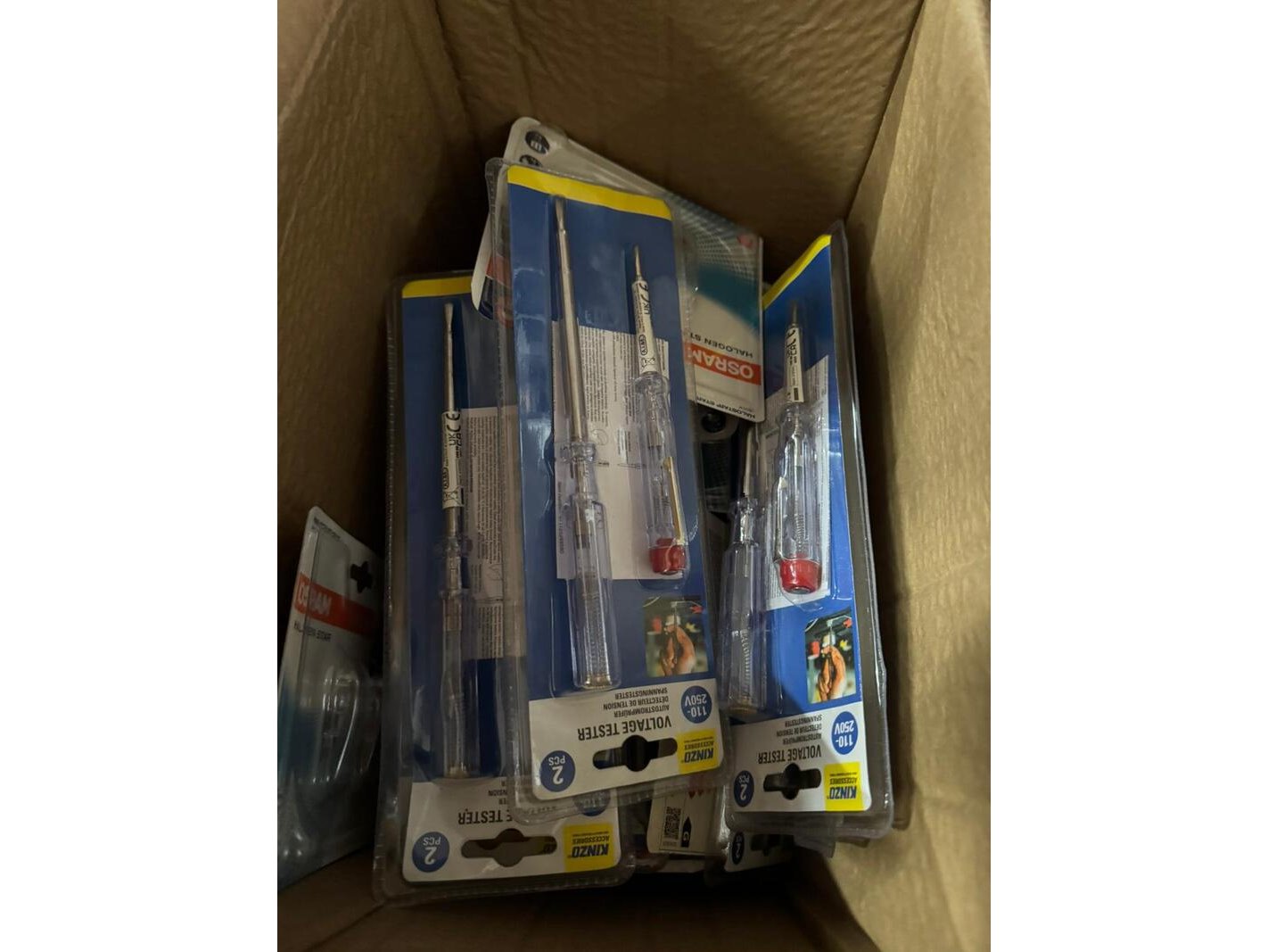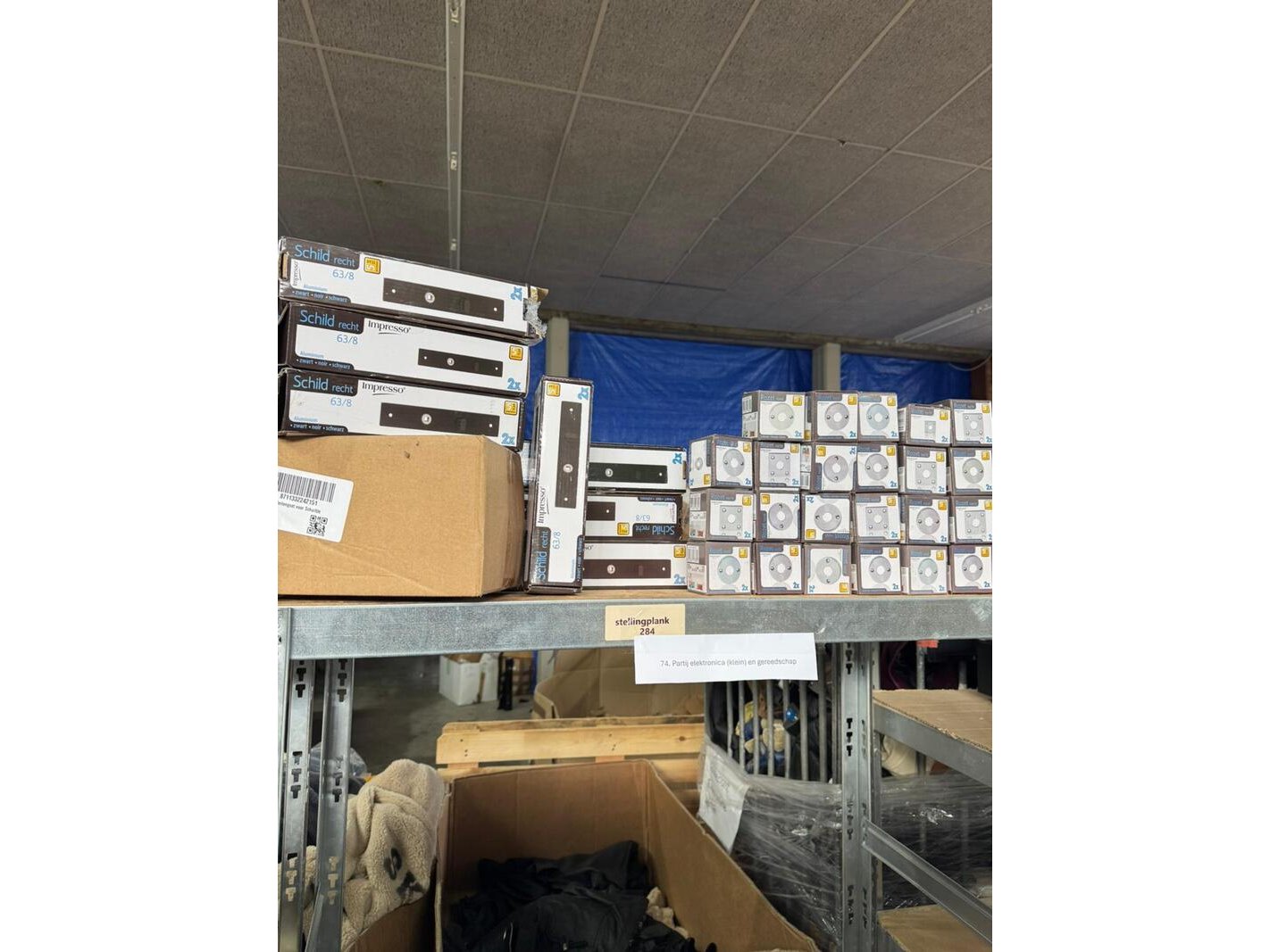 Product: elektronica en gereedschap Conditie: Nieuw en retourgoed Specificaties: Partij van elektronica en gereedschap, waaronder: Kabels, Deurbeslag, Moederborden, Printer, Tablethouders, Kassa, Audio-apparatuur, cd's, DVD's, kachelkoordsets, telefoonhoesjes, inktcartridges, lampen, labels, schroevendraaiers, koplamppitten etc. Voor alle producten zie foto's.