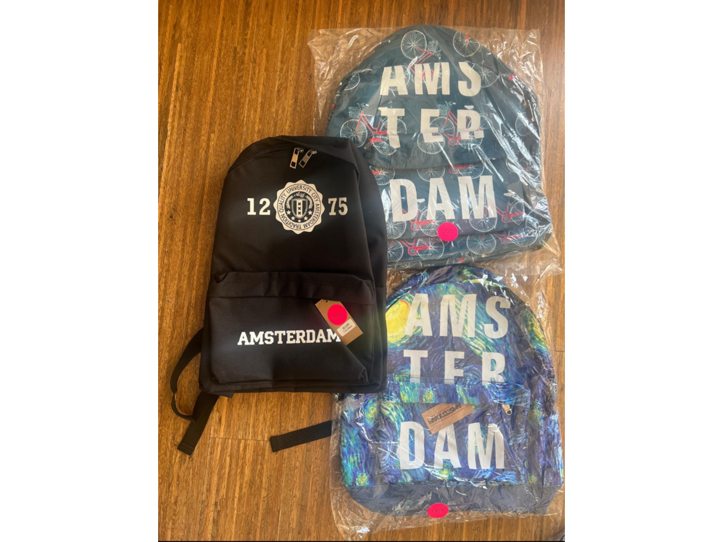 Product: Rugzak Conditie: Nieuw Specificaties: Partij van circa 1.000 rugzakken met opdruk ‘Amsterdam’. Het betreft een gemengde partij met diverse modellen, uitvoeringen en formaten. De rugzakken zijn geschikt voor onder andere retailverkoop, markthandel, souvenirs, promotionele doeleinden of wederverkoop. Totale geschatte verkoopwaarde: €7.700.