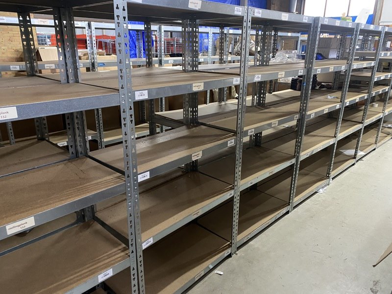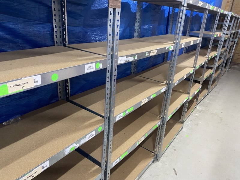 Product: Stellingen Materiaal: Verzinkt metaal & HDF Afmeting: 176 x 90 x 40 cm Conditie: gebruikt Specificaties: Partij van Ca. 30 stellingen. Voornamelijk van hetzelfde model, maar enkele van andere modellen, zie foto's