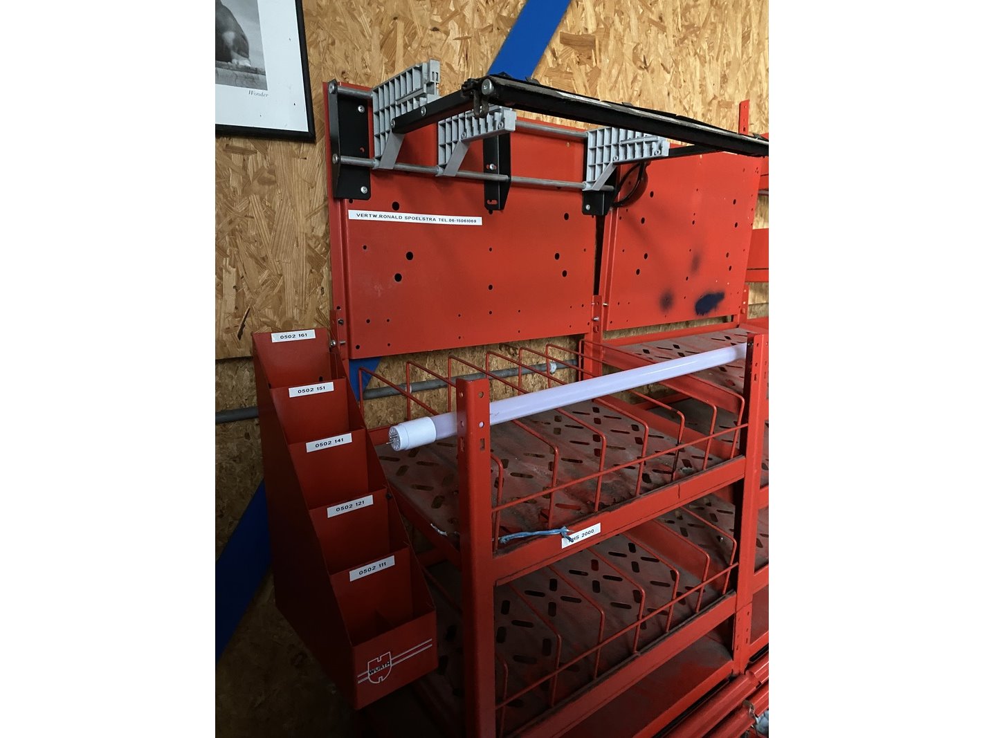 Merk: Wurth Product: Stellingkast Kleur: Rood Afmeting: Ca. 55x32x200cm Conditie: Gebruikt Specificaties: Partij van 4 stellingen van het merk Würth, voorzien van diverse lades en vakjes. Het betreft praktische opbergstellingen met meerdere lades en compartimenten, geschikt voor het overzichtelijk opslaan van onderdelen, gereedschap of klein materiaal. De stellingen hebben per stuk een afmeting van circa 55 × 32 × 200 cm en zijn ideaal voor gebruik in werkplaatsen, magazijnen of garages.