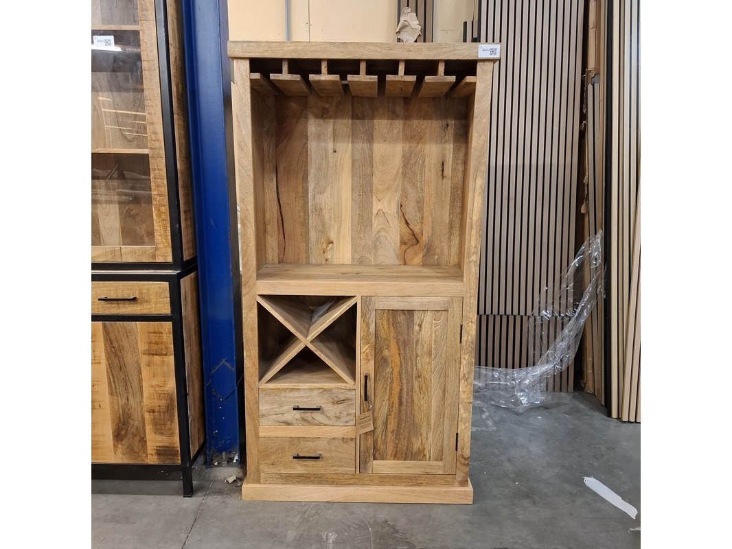 Product: Wijnkast, mangohout Materiaal: mangohout/metaal Afmeting: hxbxd ca. 171x91x41 cm Specificaties: Betreft een showroommodel, kan een beschadiging bevatten.