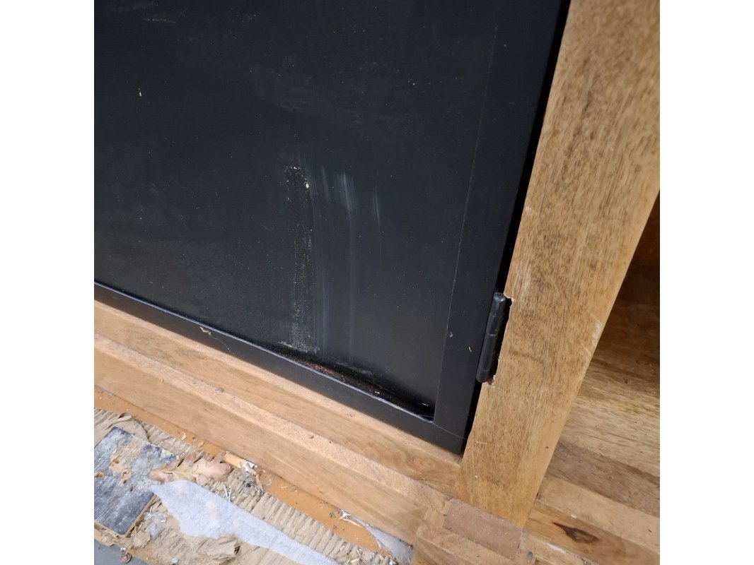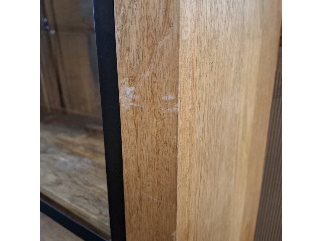 Product: Wandkast, mangohout Materiaal: mangohout/metaal Afmeting: hxbxd ca. 200x395x45 cm Specificaties: Betreft een showroommodel, kan een beschadiging bevatten.