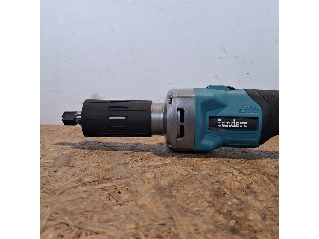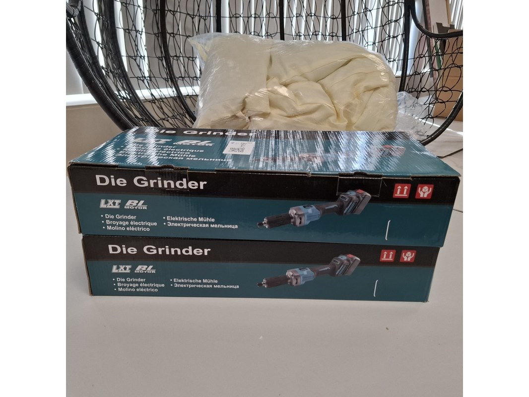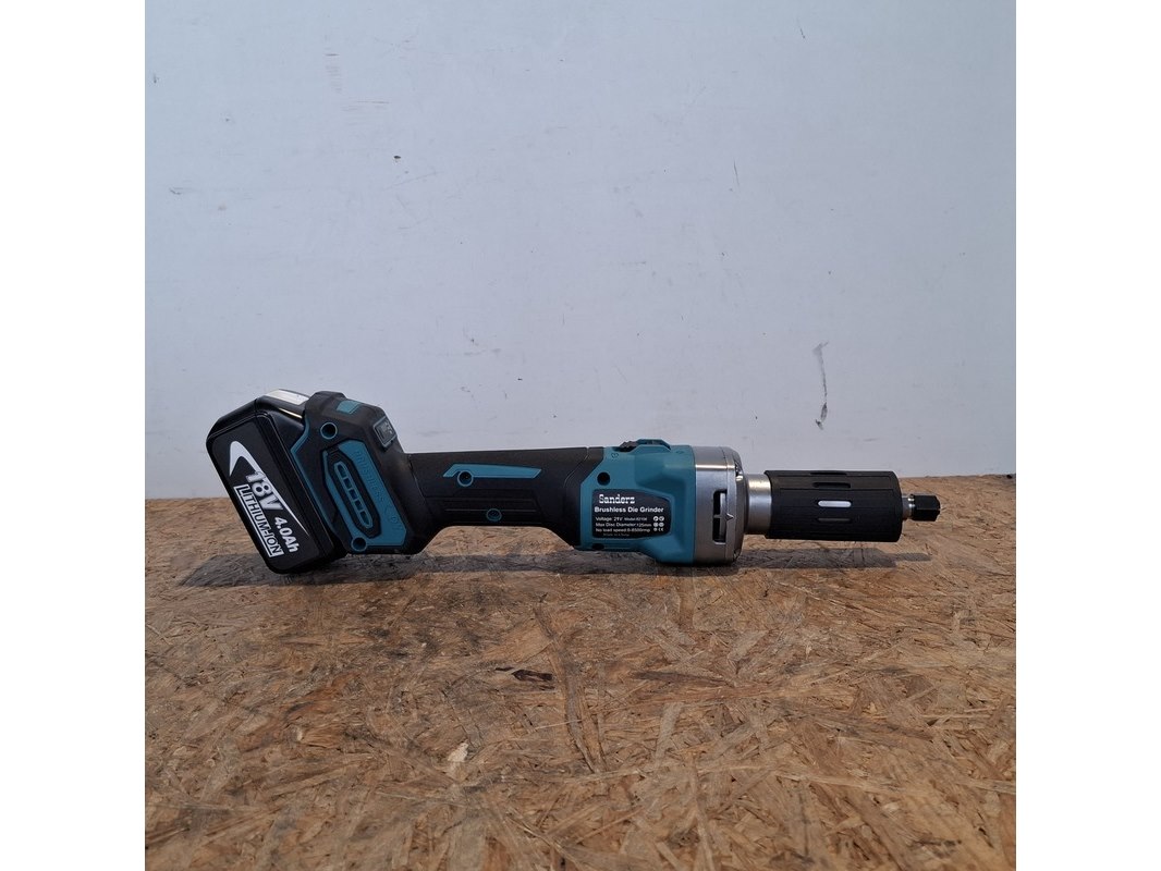Product: Rechte slijper Kleur: Blauw Specificaties: Inclusief per machine 1 lader en 2 accu's, nieuw in doos.