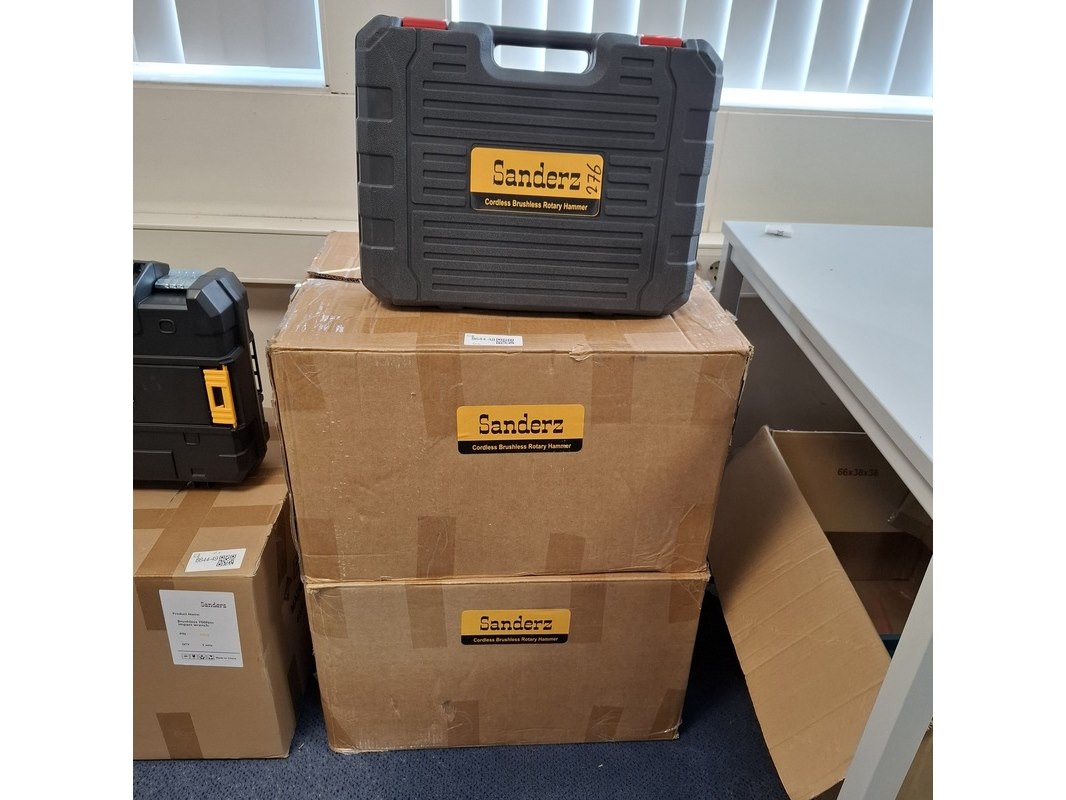 Product: Accu boorhamer, brushless Kleur: Geel Specificaties: Inclusief per machine 1 lader en 2 accu's, nieuw in koffer.