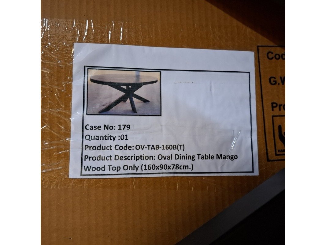 Product: Ovale eetkamertafel mangohout Kleur: Zwart Materiaal: Mangohout/metaal Afmeting: Blad ca. 160x90 cm Specificaties: Met spinpoot