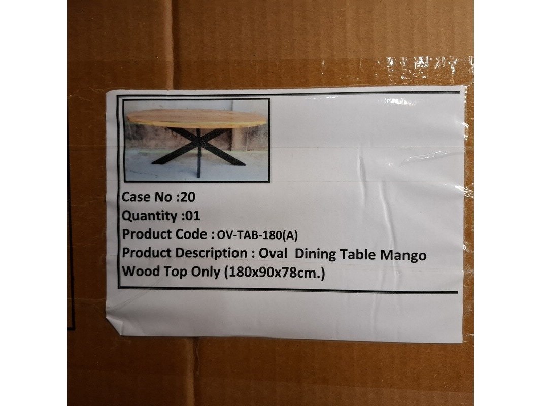 Product: Ovale eetkamertafel, mangohout Materiaal: Mangohout/metaal Afmeting: Blad ca. 180x90 cm Specificaties: Met spinpoot