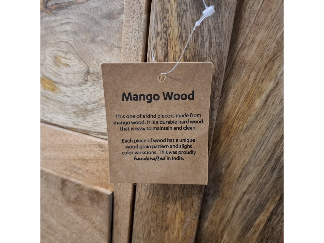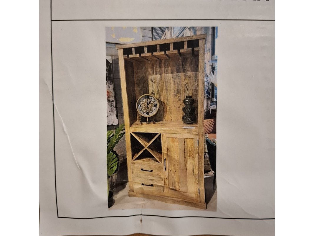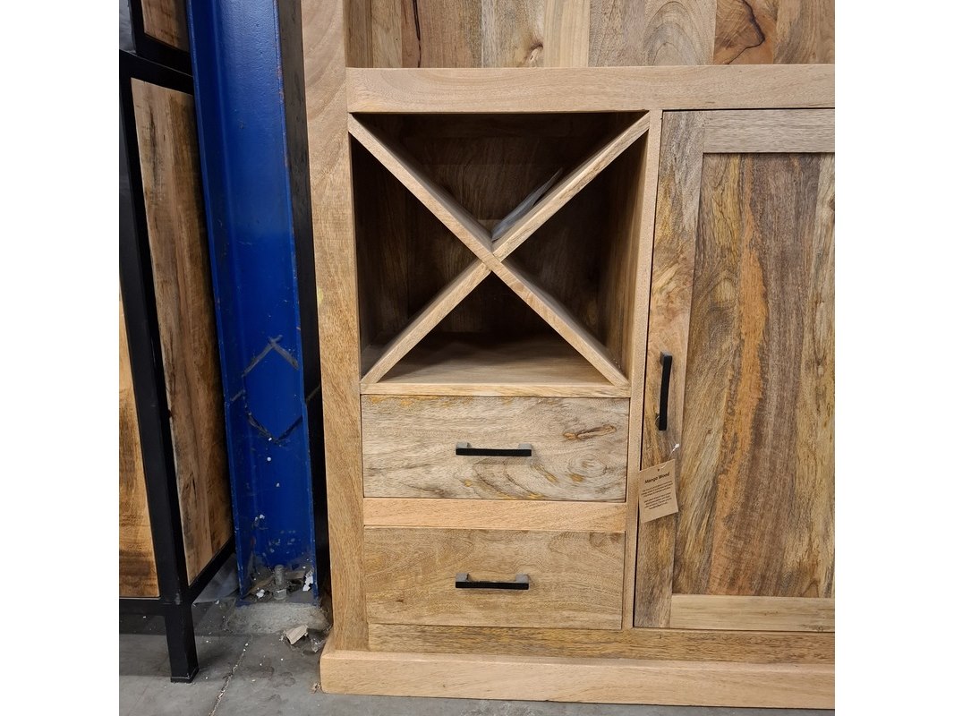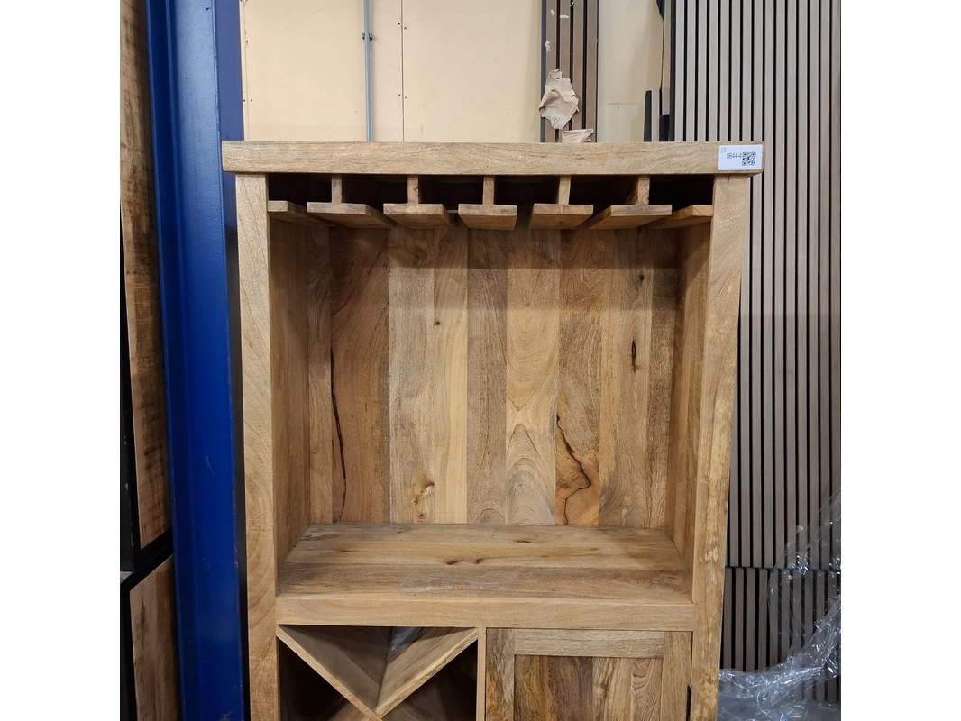 Product: Wijnkast, mangohout Materiaal: Mangohout/metaal Afmeting: Ca. 90x40x170 cm Specificaties: In 1x doos