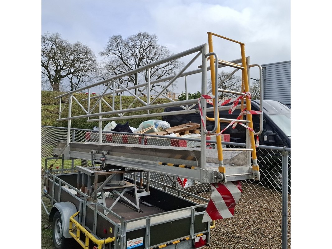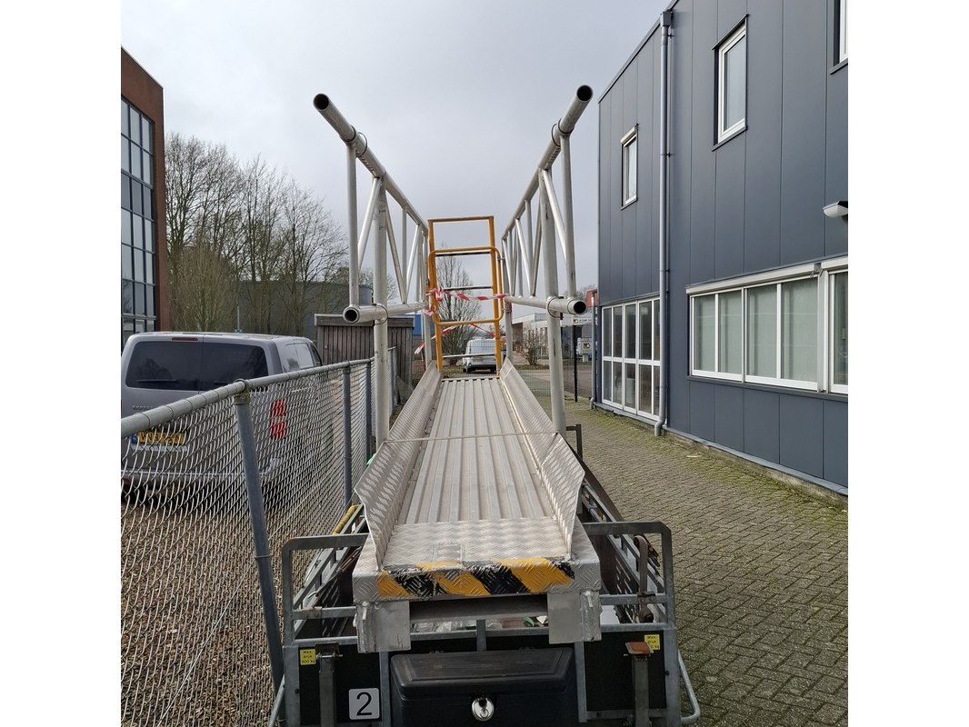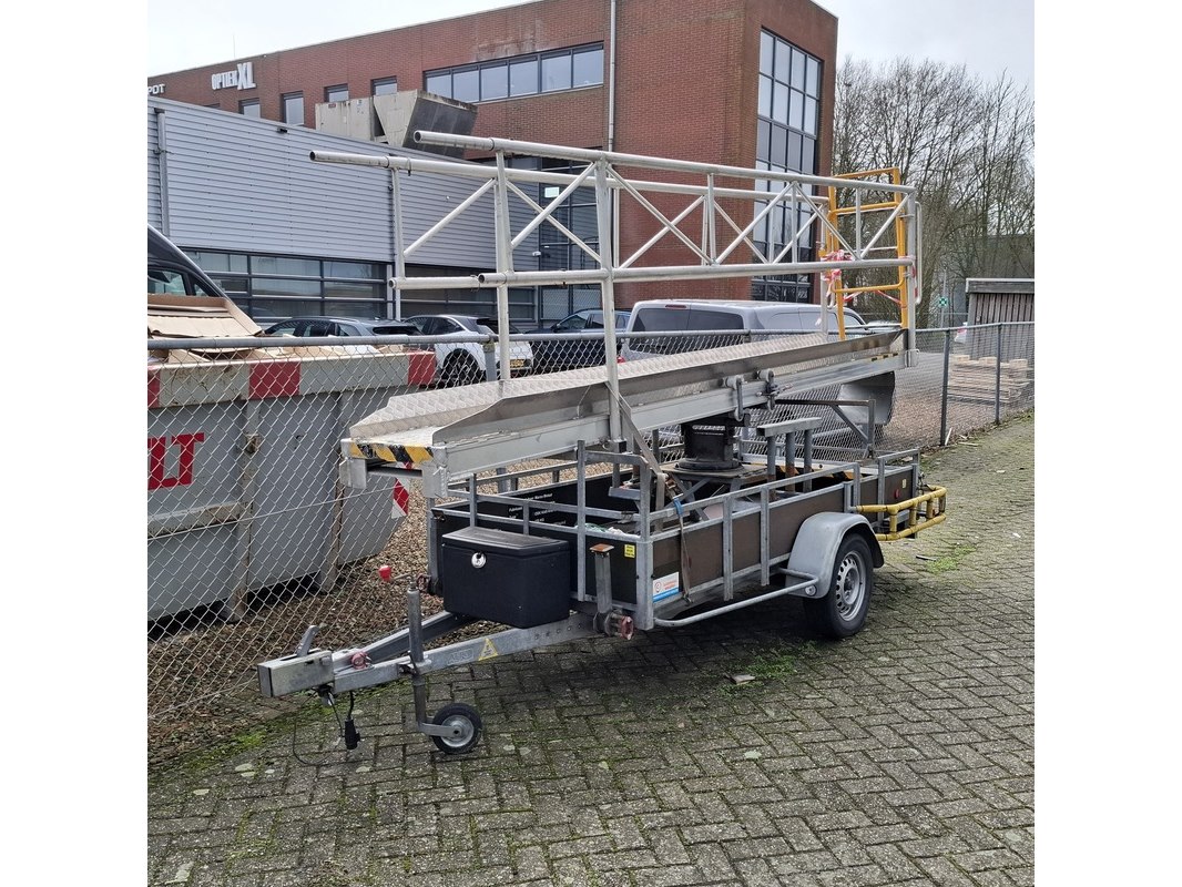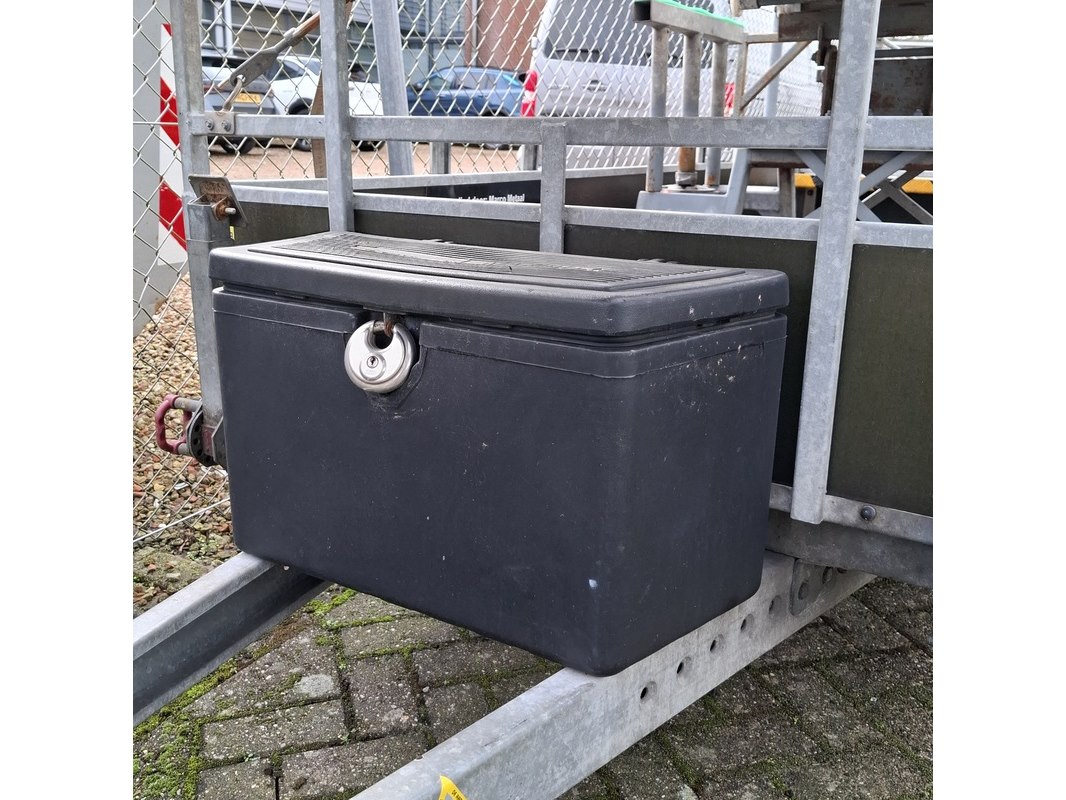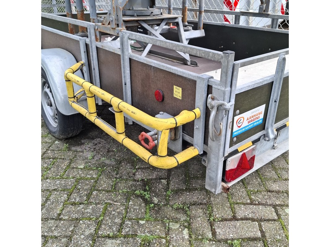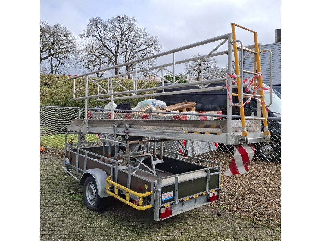 Merk: AL-KO Product: Aanhangwagen met bordes Specificaties: Bakmaat lxb ca. 310x129 cm Bordes: OSK KAR-KAR 2, werklast 150 kg, max. belasting 2 personen of 200 kg.