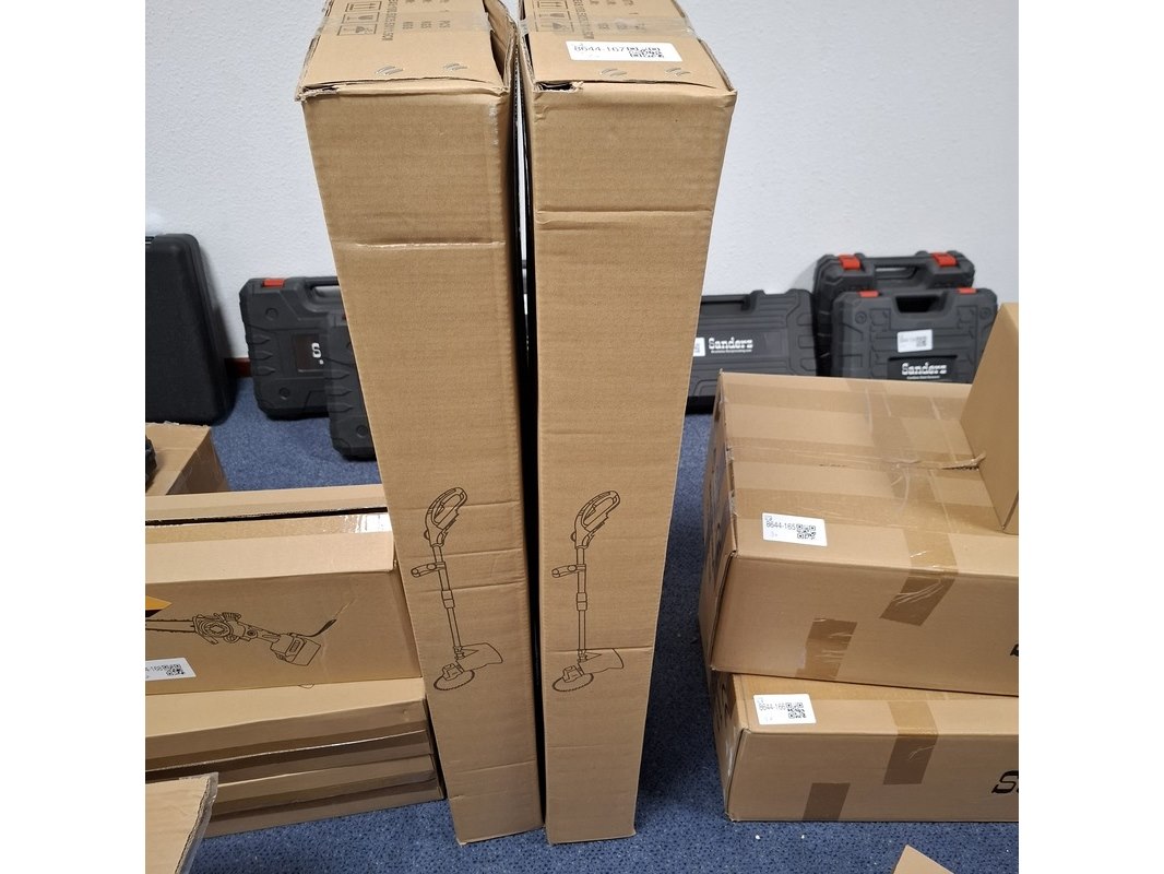 Product: Accu kantenmaaier 10", brushless Kleur: Blauw Specificaties: Inclusief per machine 1 lader en 2x accu en diverse toebehoren, nieuw in doos.