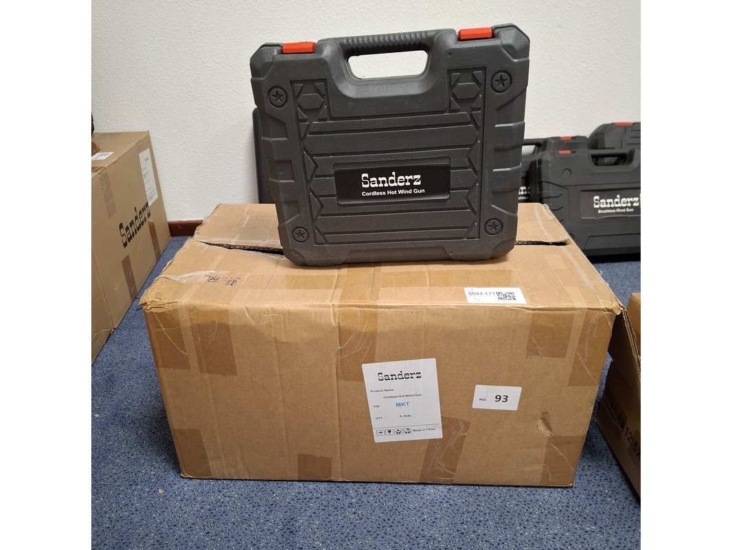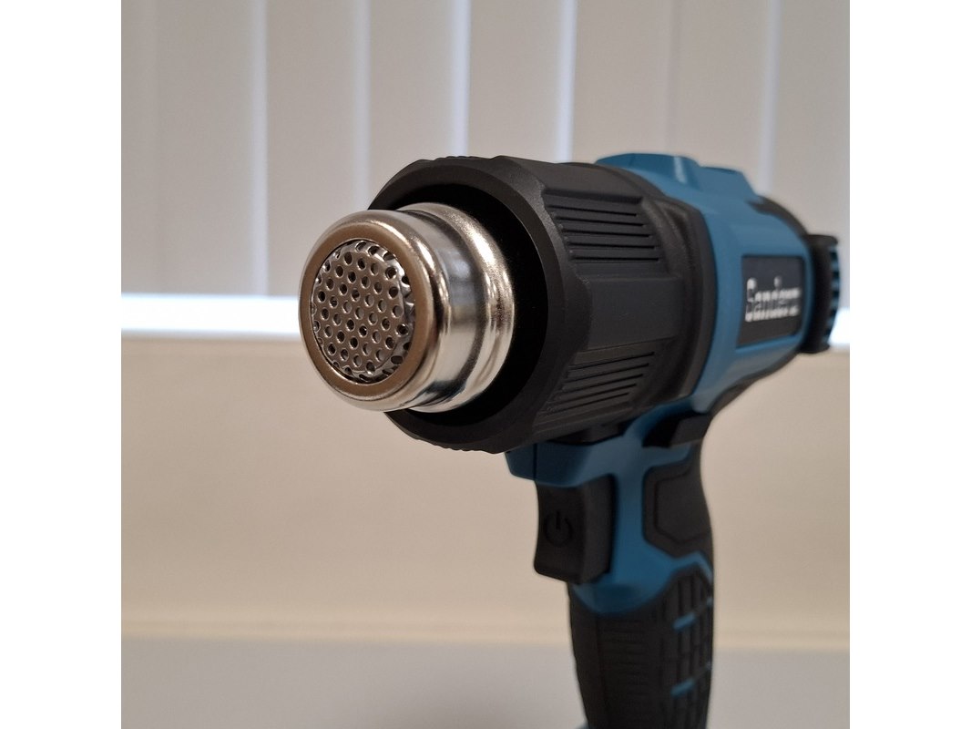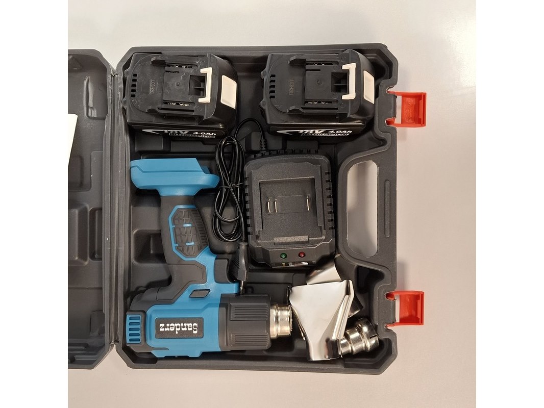 Product: Accu heteluchtpistool Kleur: Blauw Specificaties: Inclusief per machine 1 lader en 2x accu, nieuw in koffer.