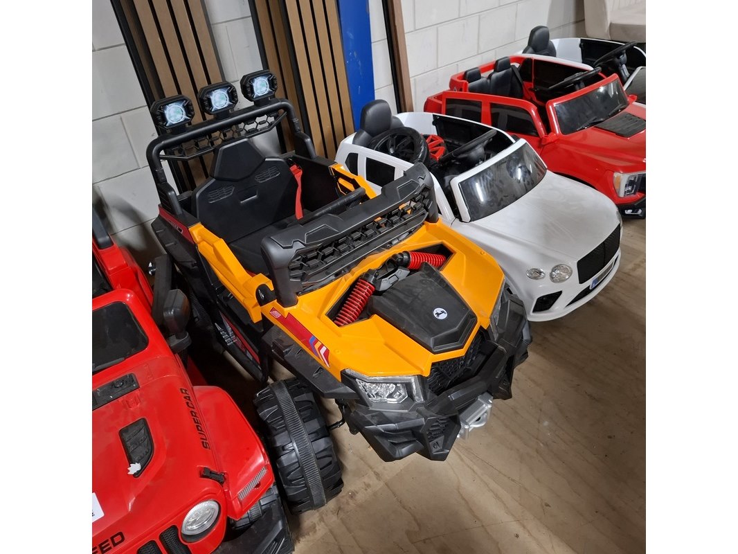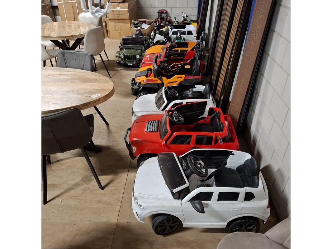 Product: Elektrische kinderauto Specificaties: Diverse modellen, werking en compleetheid onbekend. Betreft showroommodellen, kan een beschadiging bevatten.