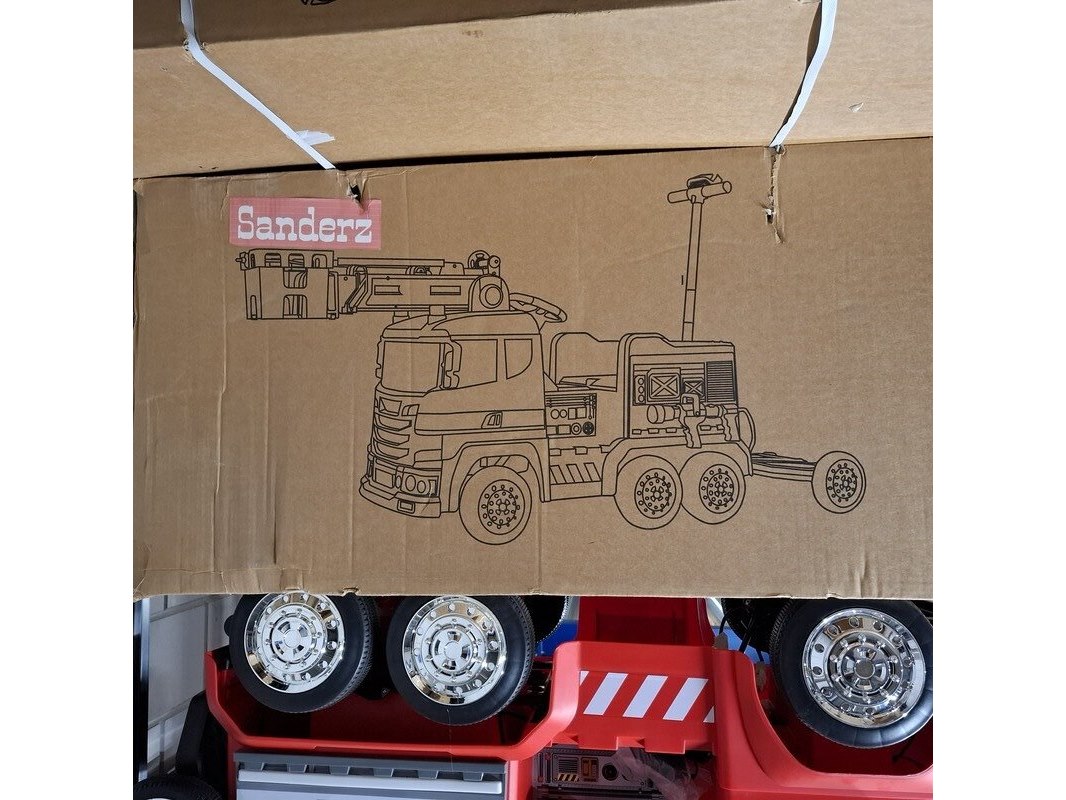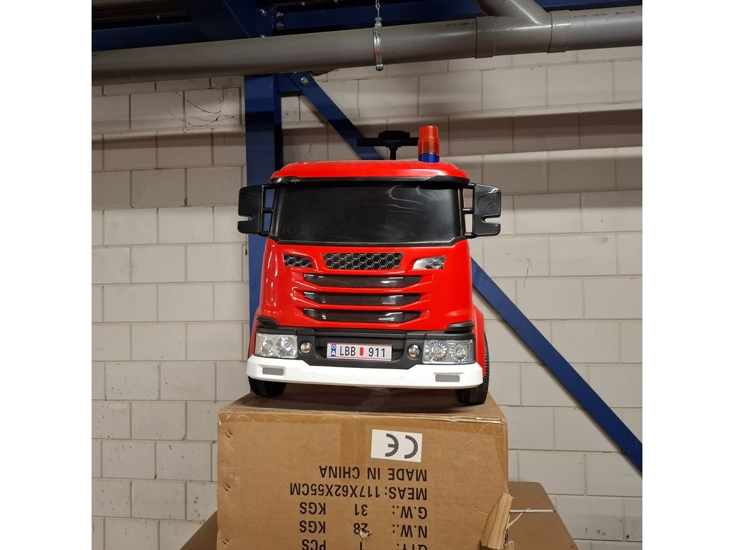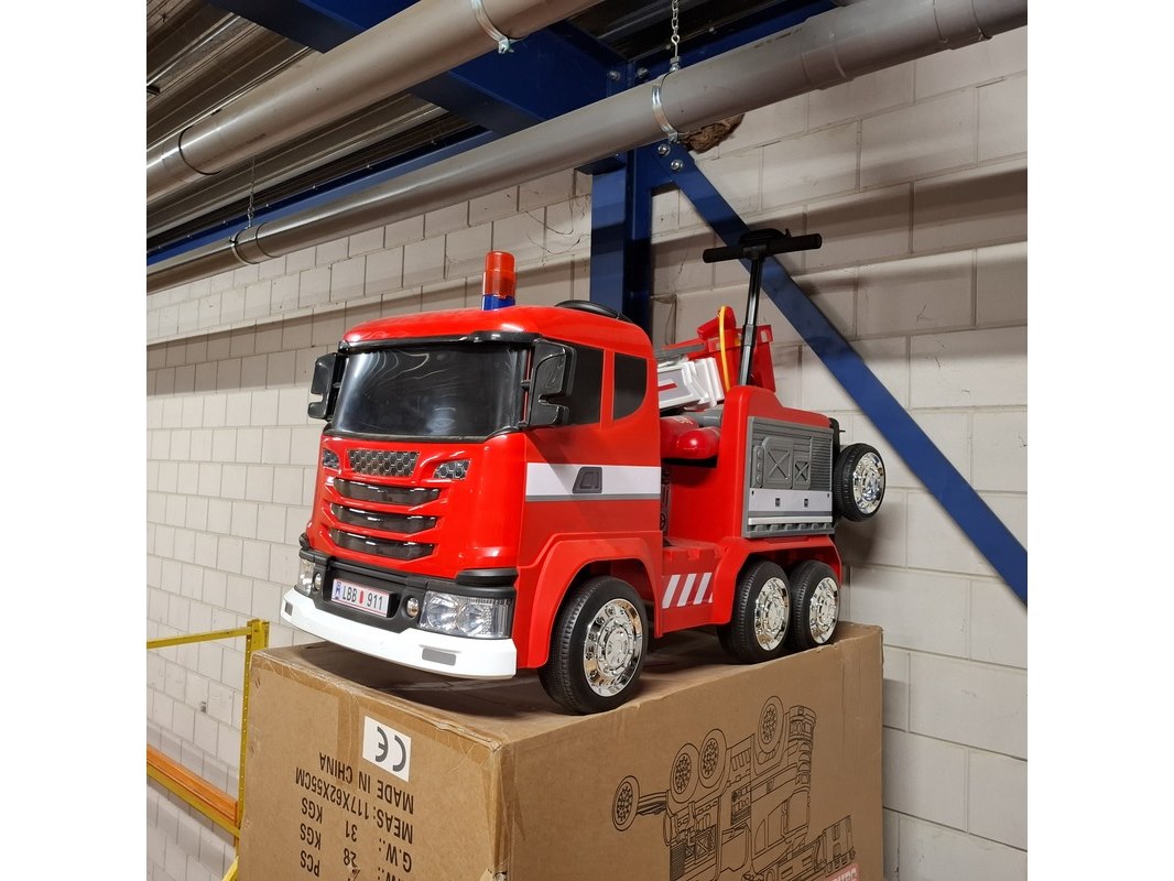 Product: Elektrische brandweerauto Kleur: Rood Specificaties: 2x in doos en 1x showroommodel