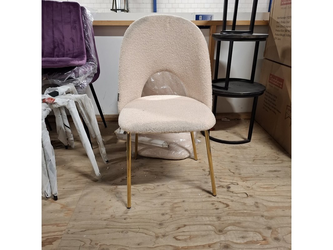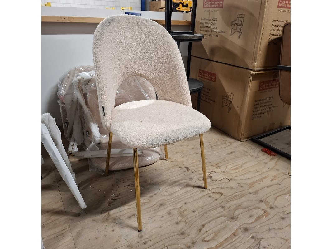 Product: Eetkamerstoel Kleur: Beige Specificaties: Met goudkleurige poot
