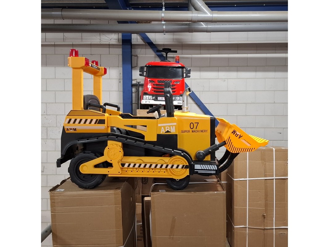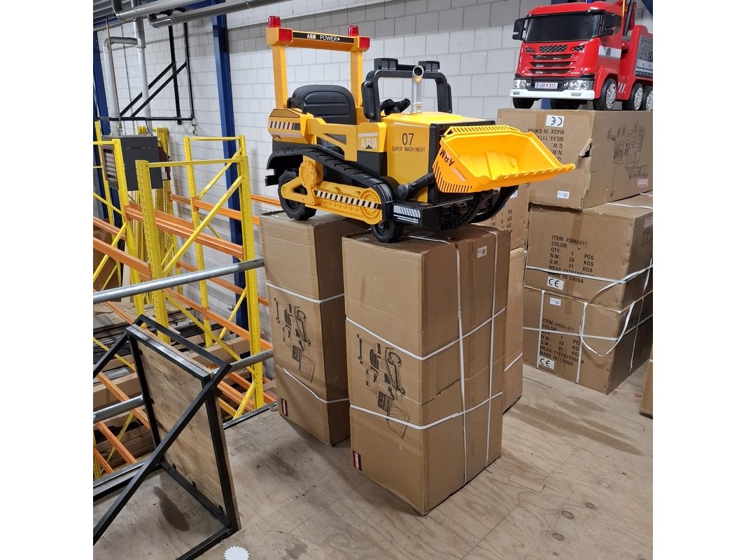 Product: Elektrische bulldozer Kleur: Geel Specificaties: 1x showroommodel en 2x in doos.