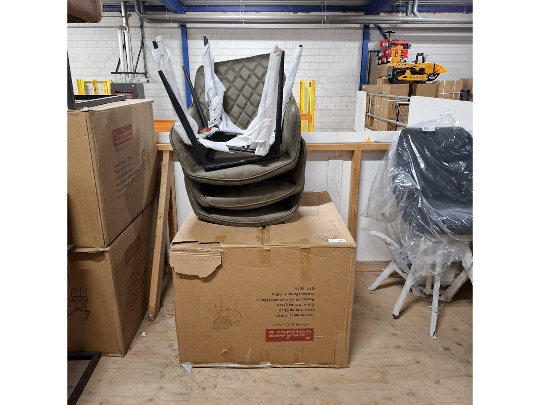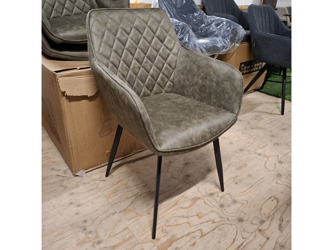 Product: Eetkamerstoel met armleuning Kleur: Groen Afmeting: zithoogte ca. 48 cm