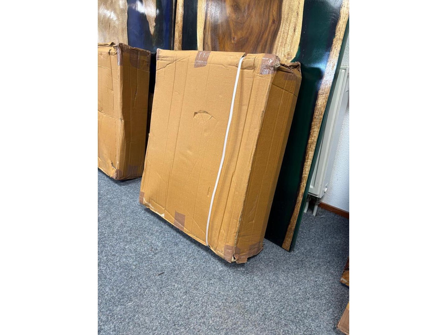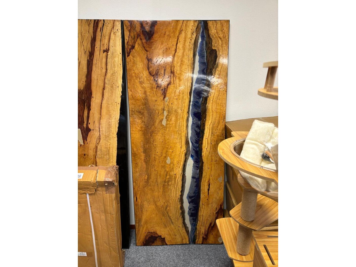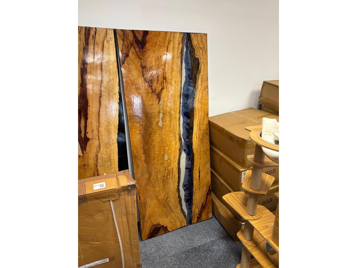 Product: Eetkamertafel, expoxy Afmeting: lxb ca. 180x76 cm Specificaties: Met set X poten.