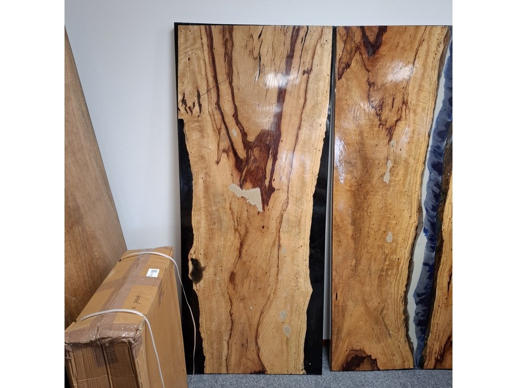 Product: Eetkamertafel, expoxy Afmeting: lxb ca. 180x76 cm Specificaties: Met set X poten.